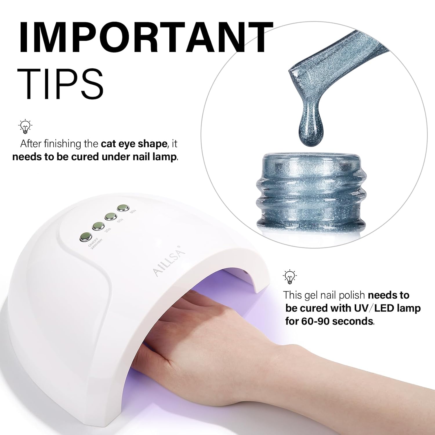 - Crystal Sparkle Effect: AILLSA cat eye gel polish creates mirror-like sparkle, crystal-clear nails, or vibrant cat-eye effects. Use it alone or pair it with any base color for stunning crystal glass nail designs featuring translucent tones and a dazzling finish.