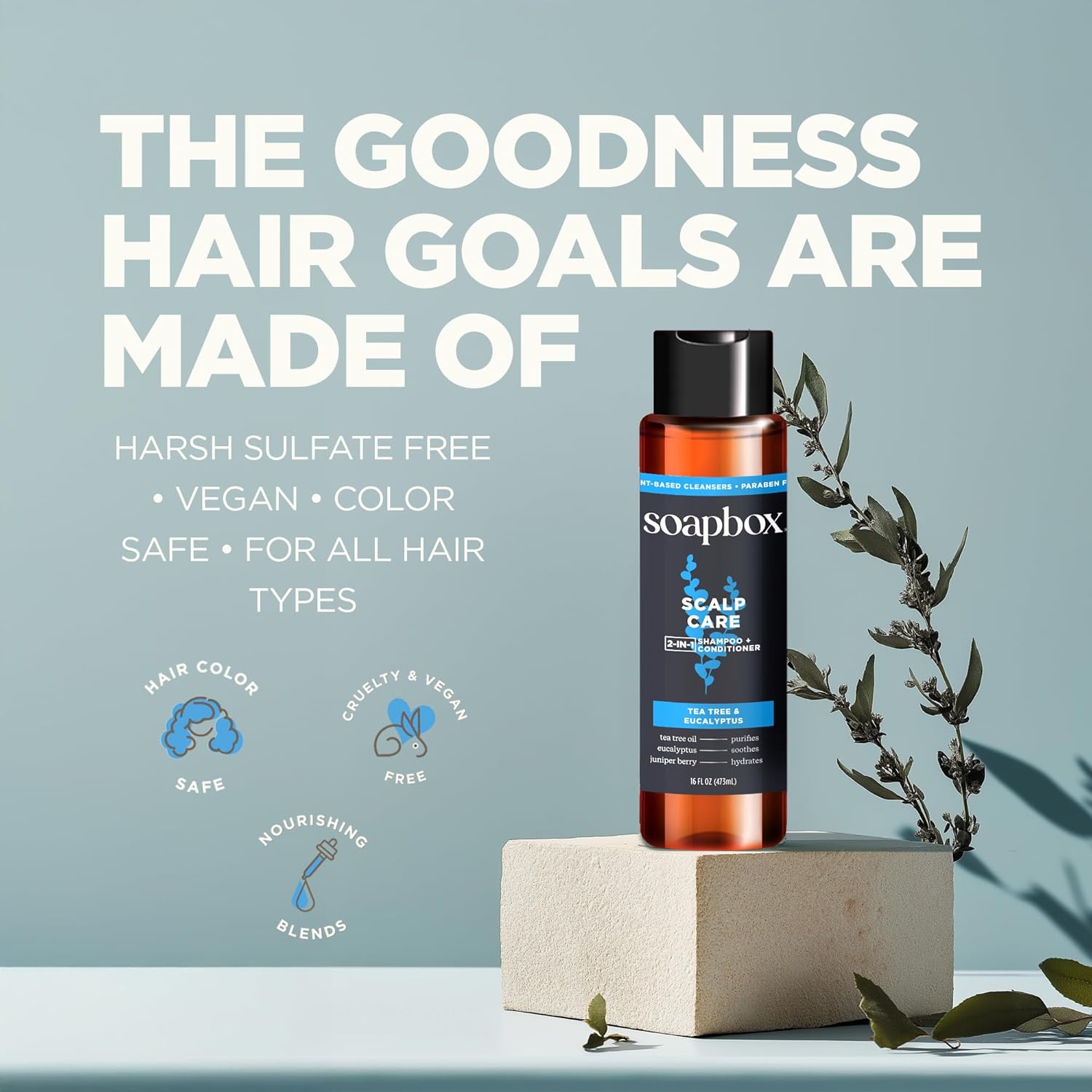 Soapbox Men's Scalp Care 2 in 1 Shampoo and Conditioner For Men, Natural Mens Shampoo and Conditioner, Tea Tree & Eucalyptus, 16oz