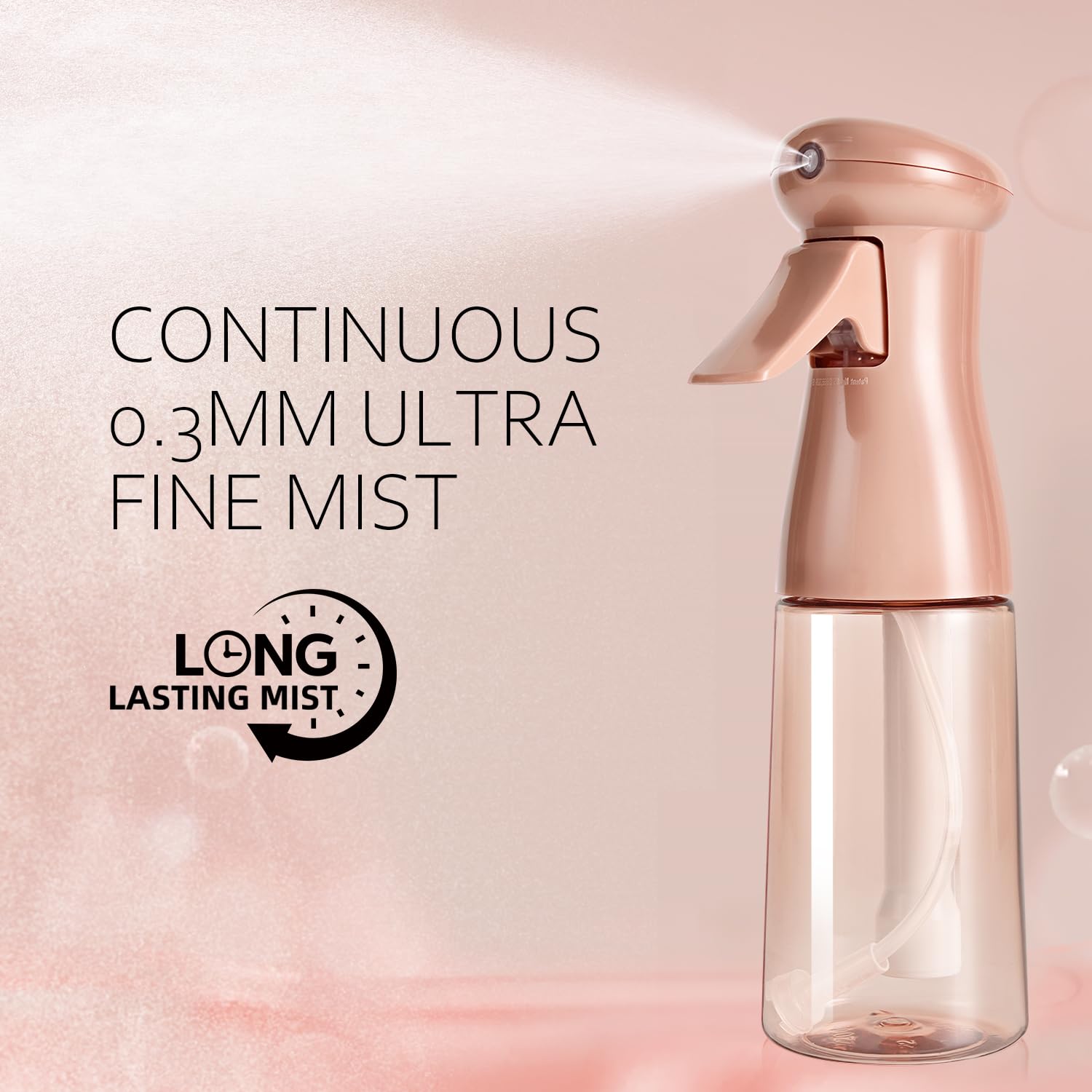 Spray Bottle For Hair, Continuous Mister Sprayer, Ultra Fine Mist Empty Spraying Water Bottles for Hairstyling, Barbers, Salons, Essential Oil Scents, Cleaning, Plants (2 Pack, 6.8 OZ)