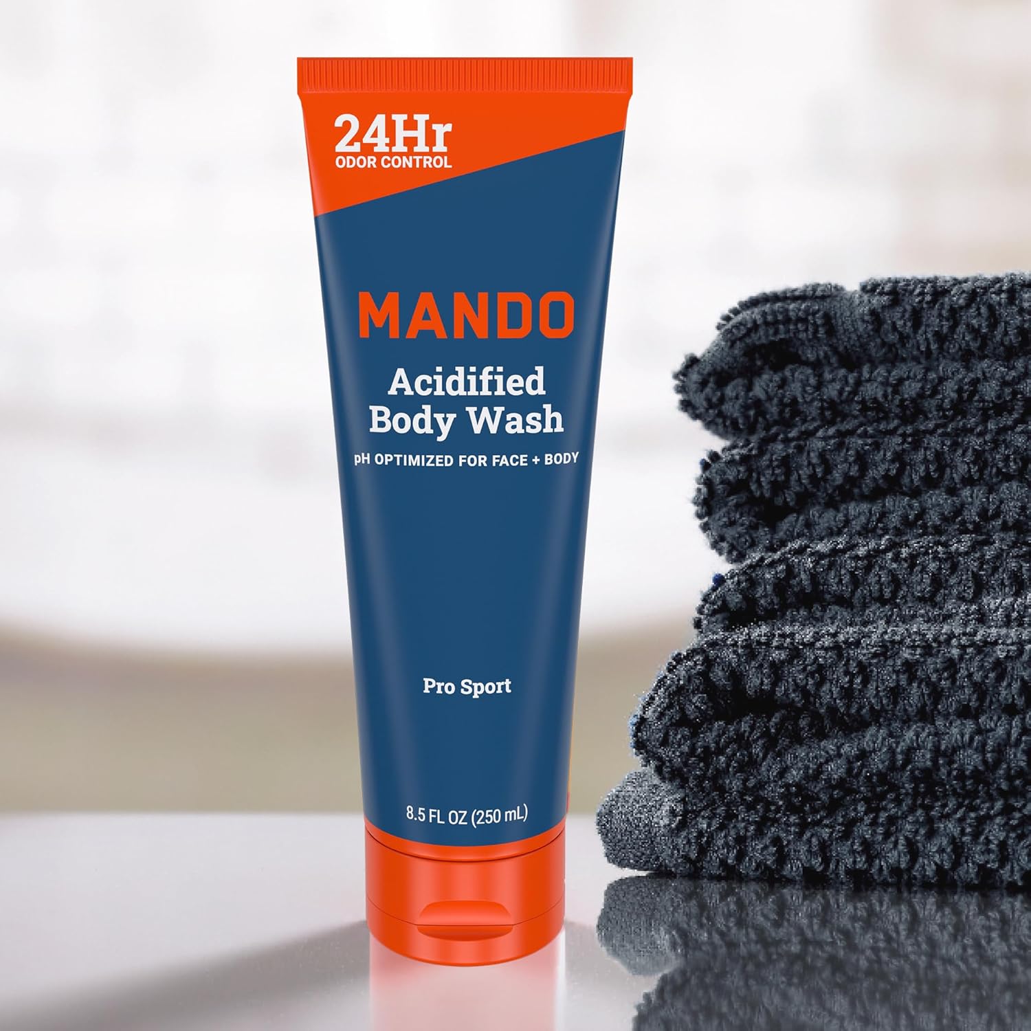 Mando Odor Shield Body Wash - 24 Hour Control - Removes Odor Better than Soap - SLS Free, Paraben Free, Skin Safe - 8.5 Ounce (Pack of 2) (Pro Sport)