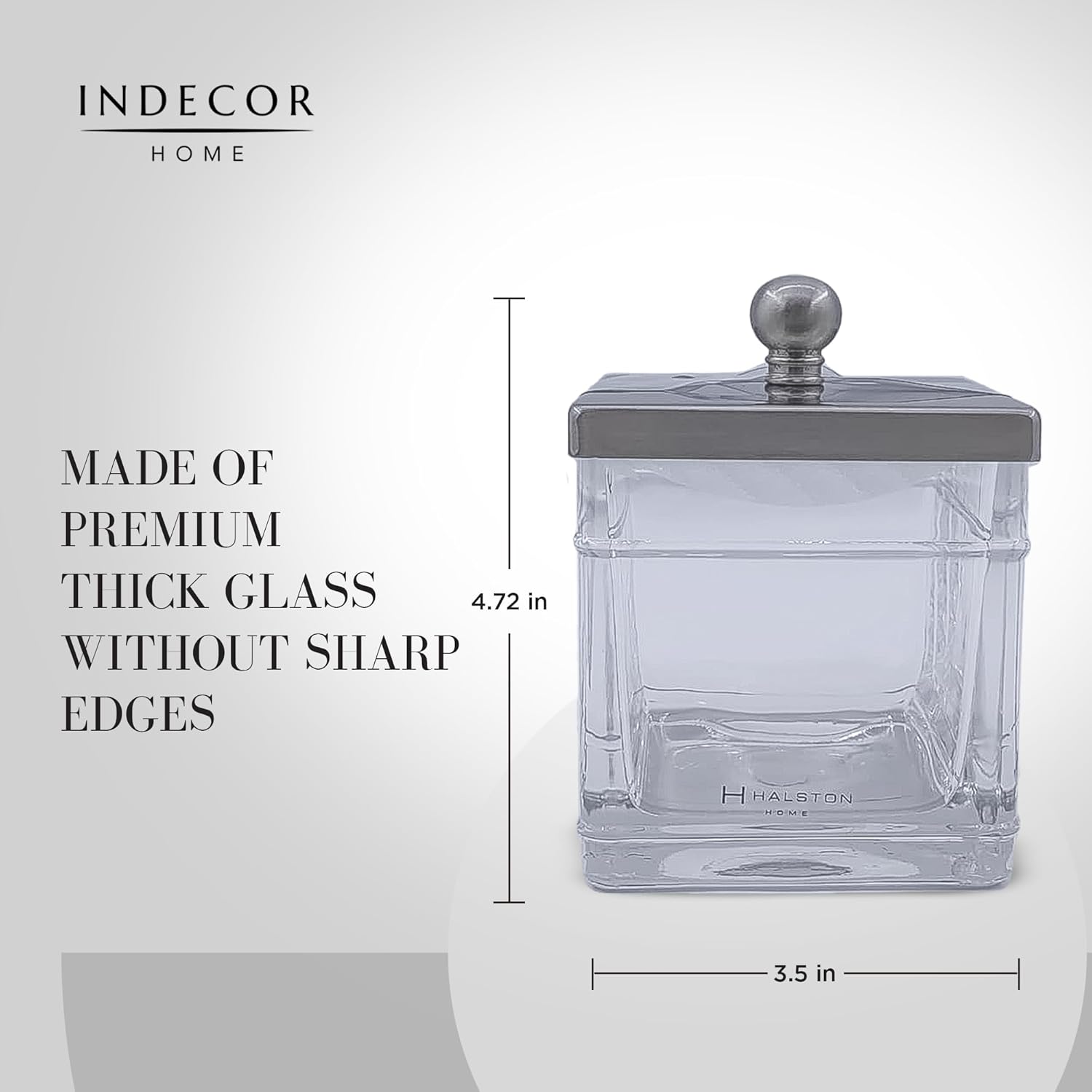 Apothecary Glass Cotton Jar Holder Brushed Nickel Stainless Steel Lid, Elegant Bathroom Storage Canister for Qtips, Cotton Balls, Floss, Makeup Organizer, Vanity Bathroom Organization