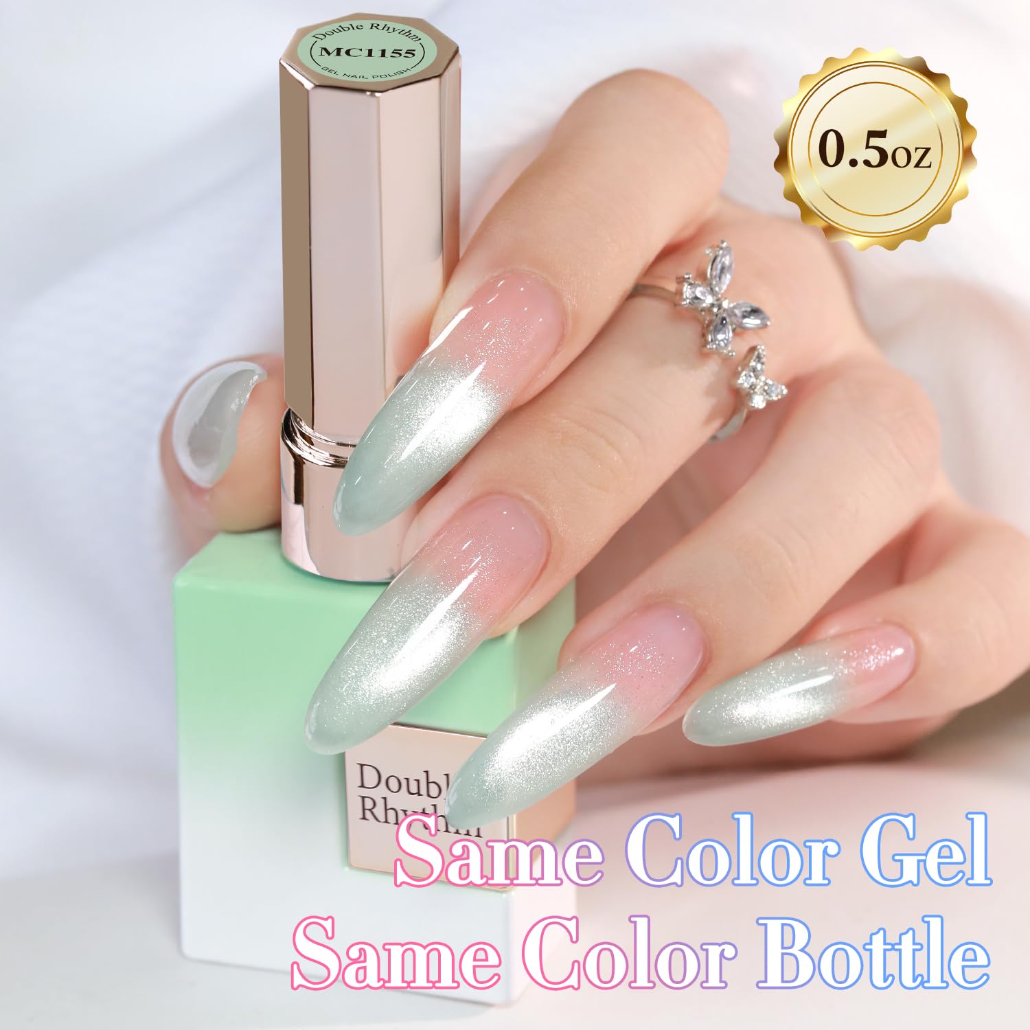 Double Rhythm 0.5 Oz Cat Eye Gel Polish with Magnet Same Color Same Bottle Holographic Glitter Shimmer Translucent Color Salon 15 ML Magnetic Nail Art (Light Green-MC1155)