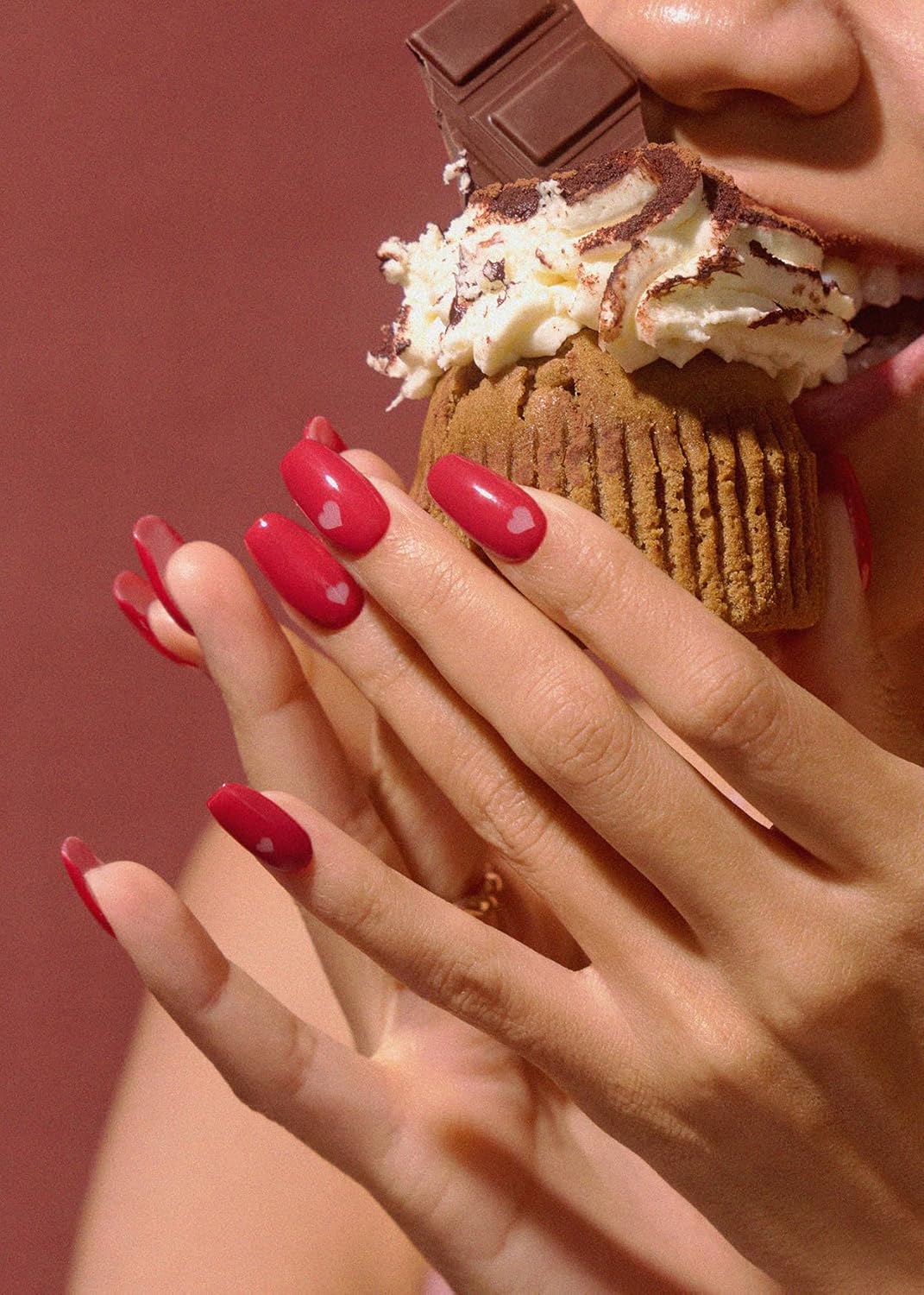 ohora Semi Cured Gel Nail Strips (N I Heart You) - Red, Solid, Works with Any UV/LED Lamps, Salon-Quality, Long Lasting, Easy to Apply & Remove - Includes 2 Prep Pads, Nail File & Wooden Stick