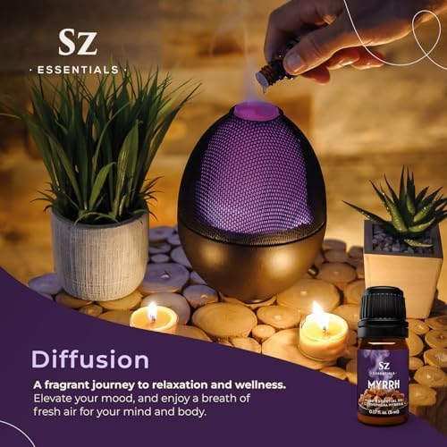 - Create an Inviting Atmosphere: Diffuse Myrrh Essential Oil to fill your space with its calming, earthy aroma—perfect for unwinding after a long day or setting the mood for quiet reflection
