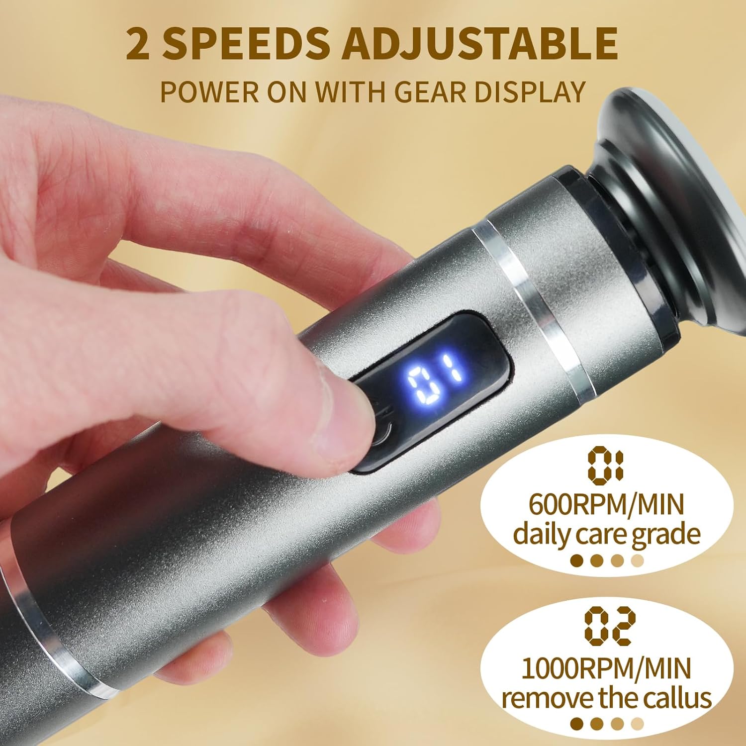 - 【Powerful Upgraded Motor and 2-speed Adjustment】: Equipped with a more powerful and stable metal - gear motor, this device won't stop running due to insufficient power or light pressure. It can effortlessly deal with stubborn calluses, dead skin, and cracked heels. With two adjustable speeds (600rpm and 1000rpm), you can select the appropriate rotation speed according to the condition of your foot skin