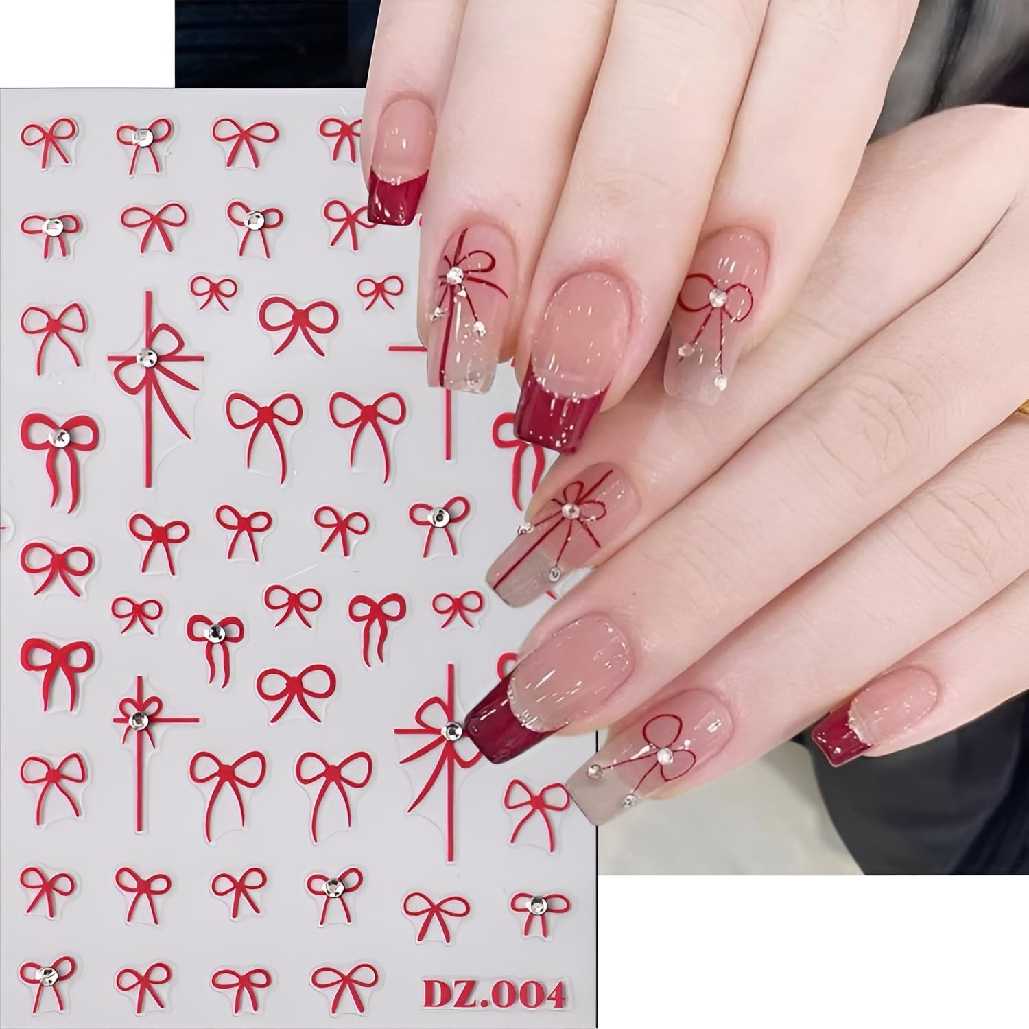 - Easy to Use:5D self adhesive bow nail stickers for women, it is very easy to apply.Just choose a suitable pattern and apply it on the nails in the correct position, you can use a layer of nail polish to fix for long-term lasting