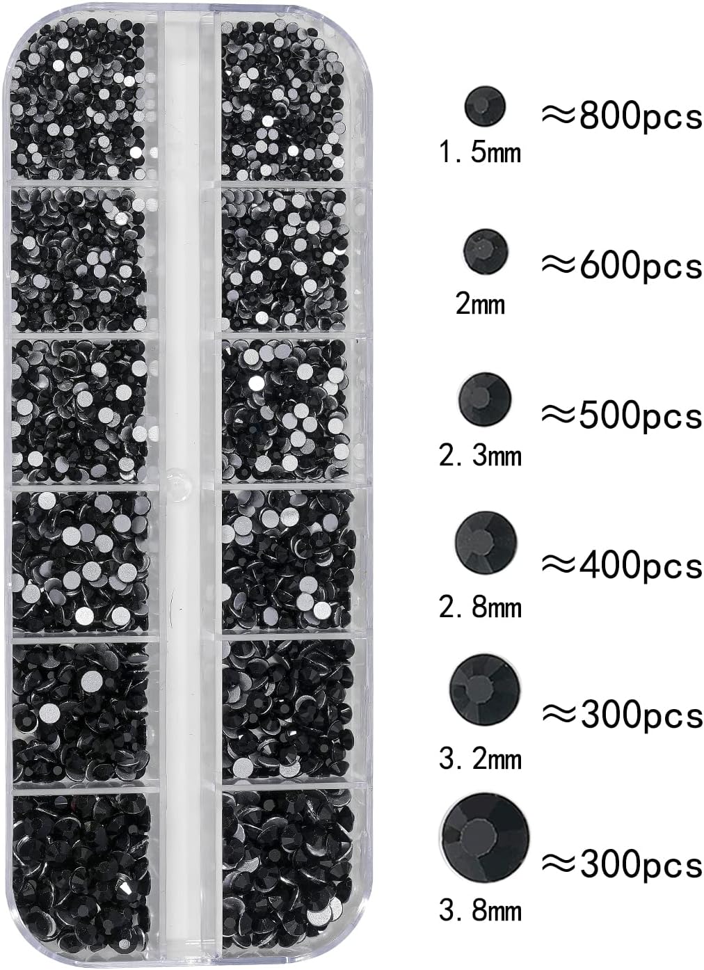 - Color : 3# Black Nail Rhinestones