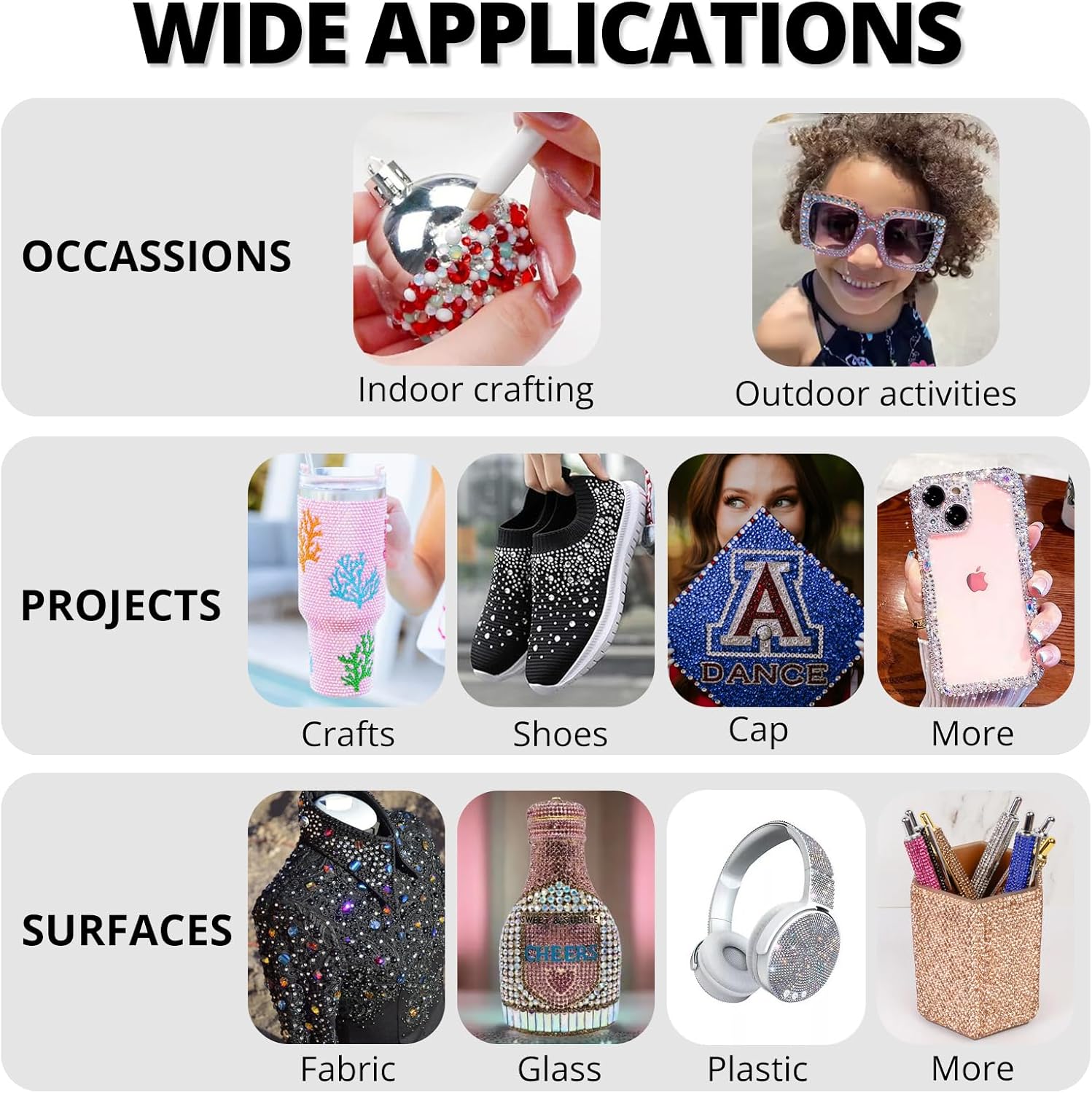 - Easy to Use -- This kit is designed to be straightforward, and versatile for various crafting projects. The manual is user-friendly and beneficial for both novice and experienced crafters. The complete and durable tools are suitable for precisely applying rhinestones to create intricate designs, with no additional tools required. Rhinestones are easy to apply and remove. The sturdy container with 15 grids keeps all rhinestones organized by size and color, making them easy to store and access