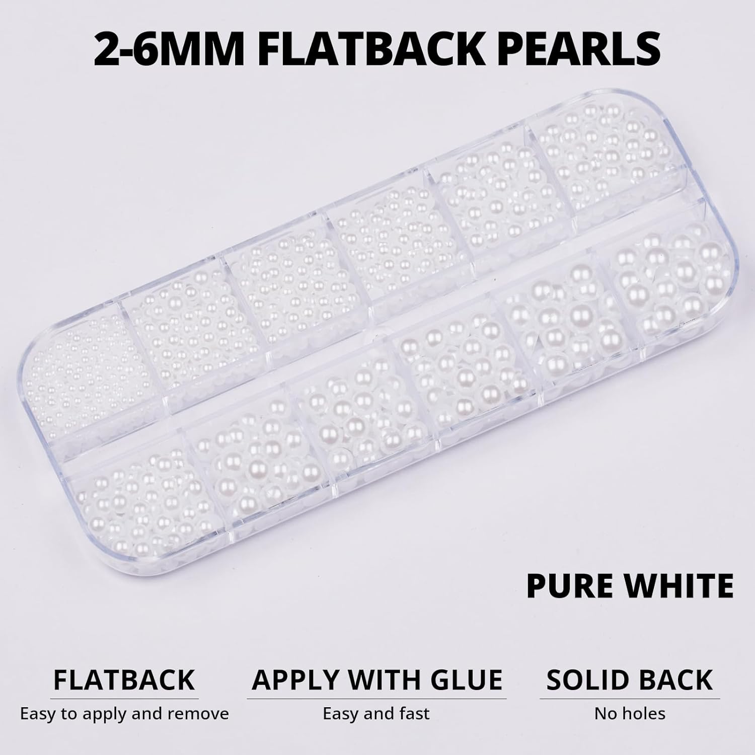 5000Pcs Flatback Pearls for Crafting Bedazzling, White Mix 2/3/4/5/6mm Half Pearl Beads Flat Back for Crafts Clothing Tumbler Shoes Scrapbooking Charms Wedding Gown Glasses Boots with B7000 Glue