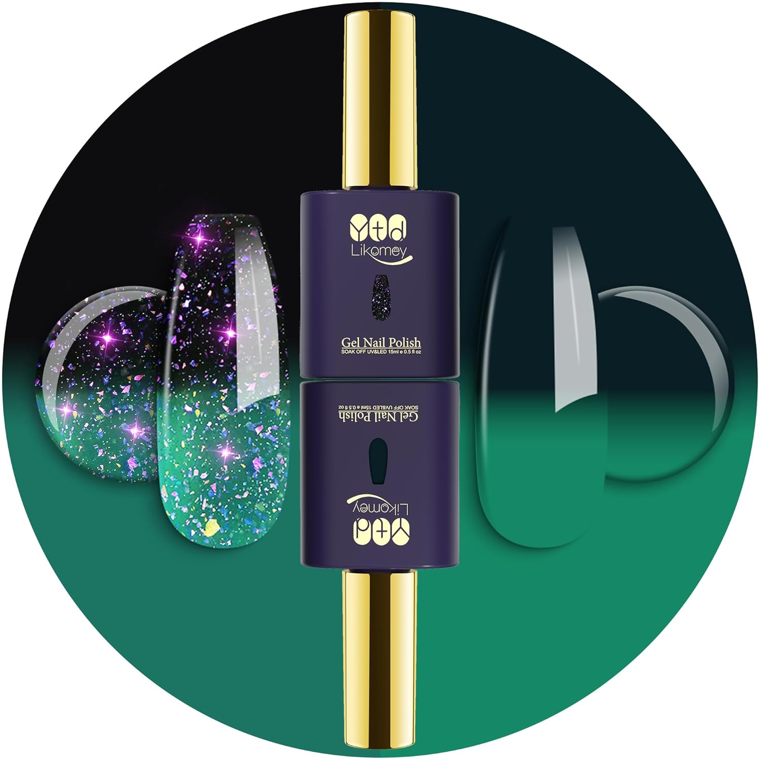YTD Likomey Color Changing Gel Nail Polish Set,2 Pcs 15ml Bright Green to Dark Green Brocade Glitter and Pure Color Kit,Thermal Ombre Change Colors Salon Manicure Fall Winter UV Nail Varnish,WB2-3
