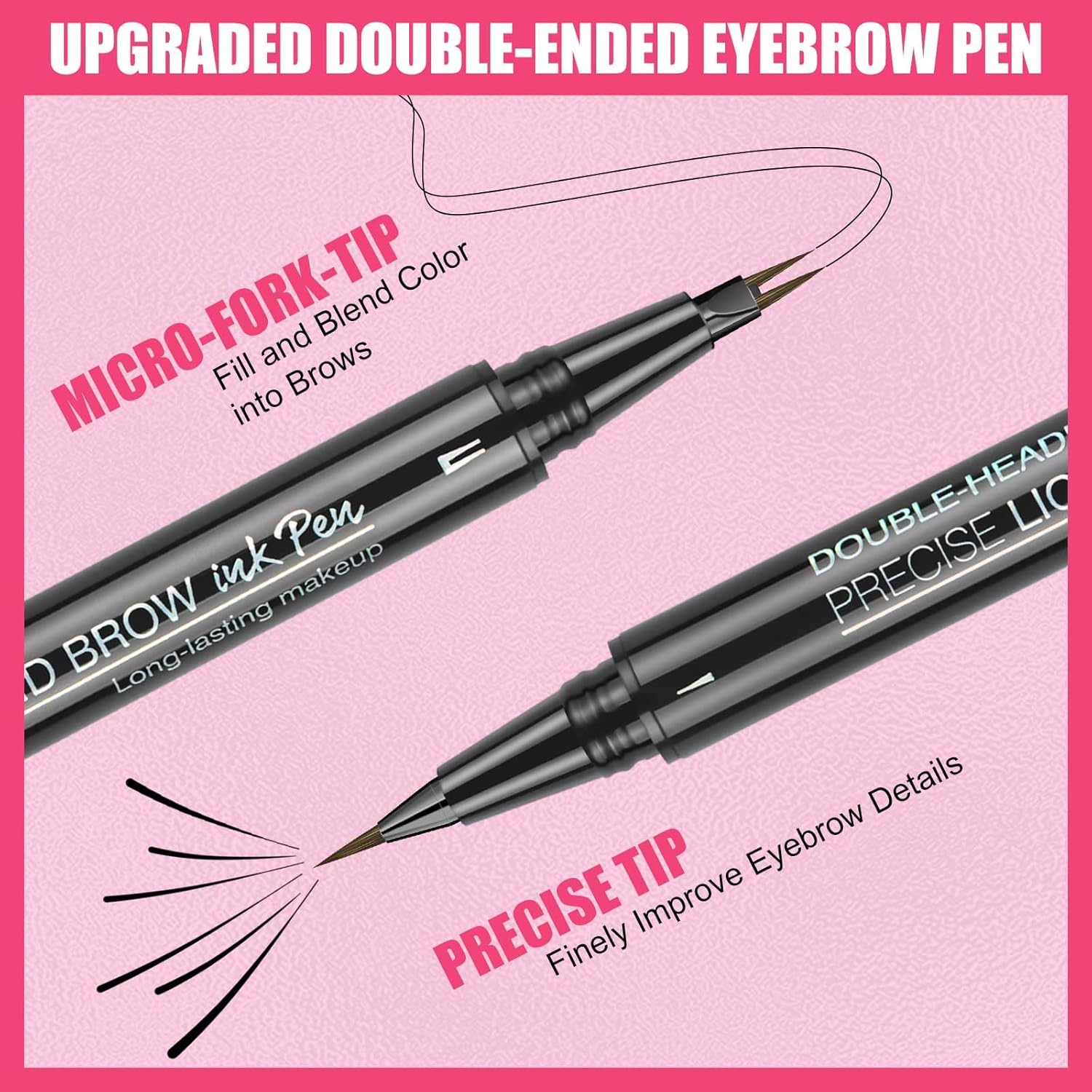 Microblading Eyebrow Pencil, Waterproof Eyebrow Pencils for Women Hair Like Natural Liquid Brow Contouring Pen, 2-in-1 Dual-Ended Long Lasting Brow Filler Pen with Precise Micro-Fork-Tip, Black Brown