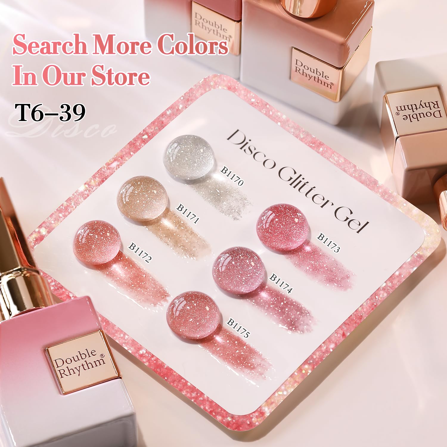 Double Rhythm 0.5Oz Glitter Gel Polish Shimmer Reflective Color for Nail Art Salon DIY Soak Off 15ml Nail Lamp Gel Polish at Home (Peach Pink-B1172)