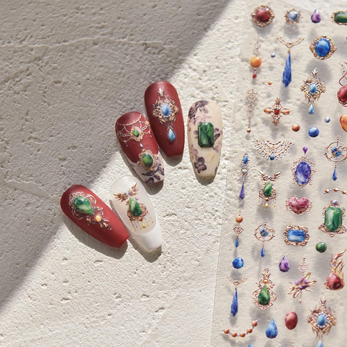 Jewels Nail Stickers for Nail Art 3D Necklace Pendant Jewels Gems Shaped Nail Decals Luxury Stickers for Nails Designs Self Adhesive Nail Art Supplies & Decorations for Women 1 Sheet