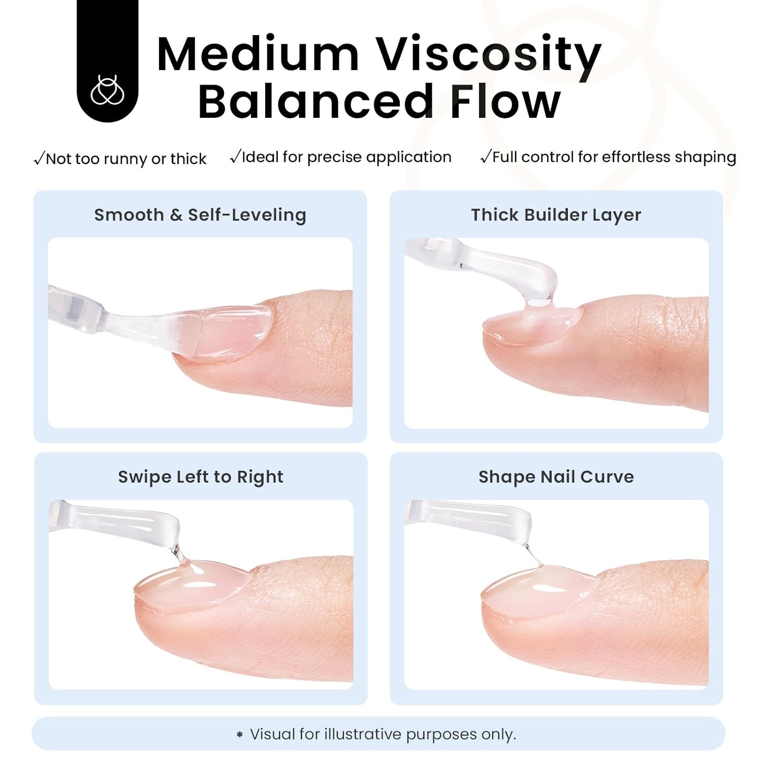 - Beginner-Friendly Self Leveling:This strengthening nail gel heas easy-to-control gel flows naturally for smooth application. Flip your finger to form a natural apex, then cure under UV&LED lamp for 60โ120s