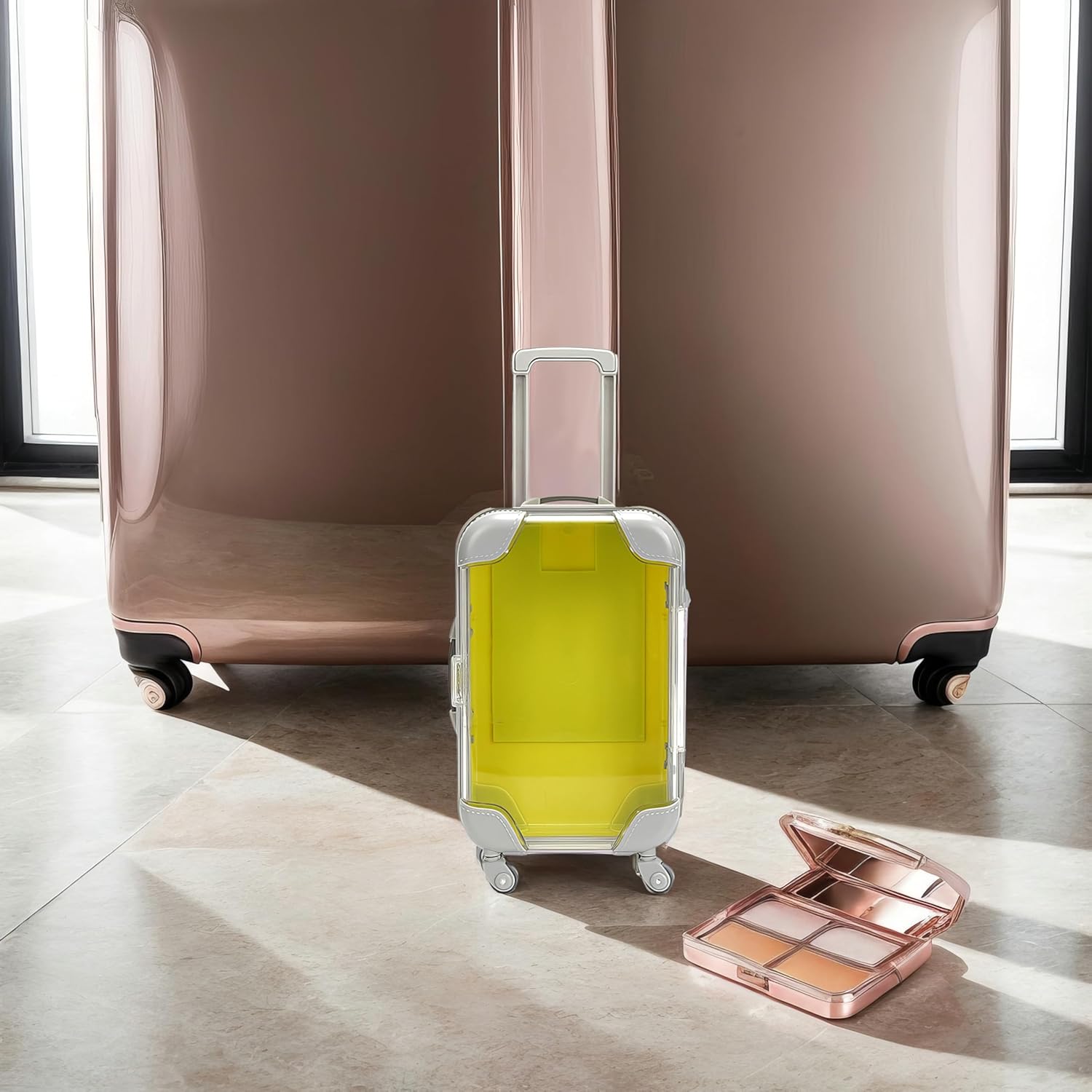 False Eyelash Storage Box, Portable Travel Organizer Mini Luggage False Eyelash Tray Makeup Tool (YELLOW)