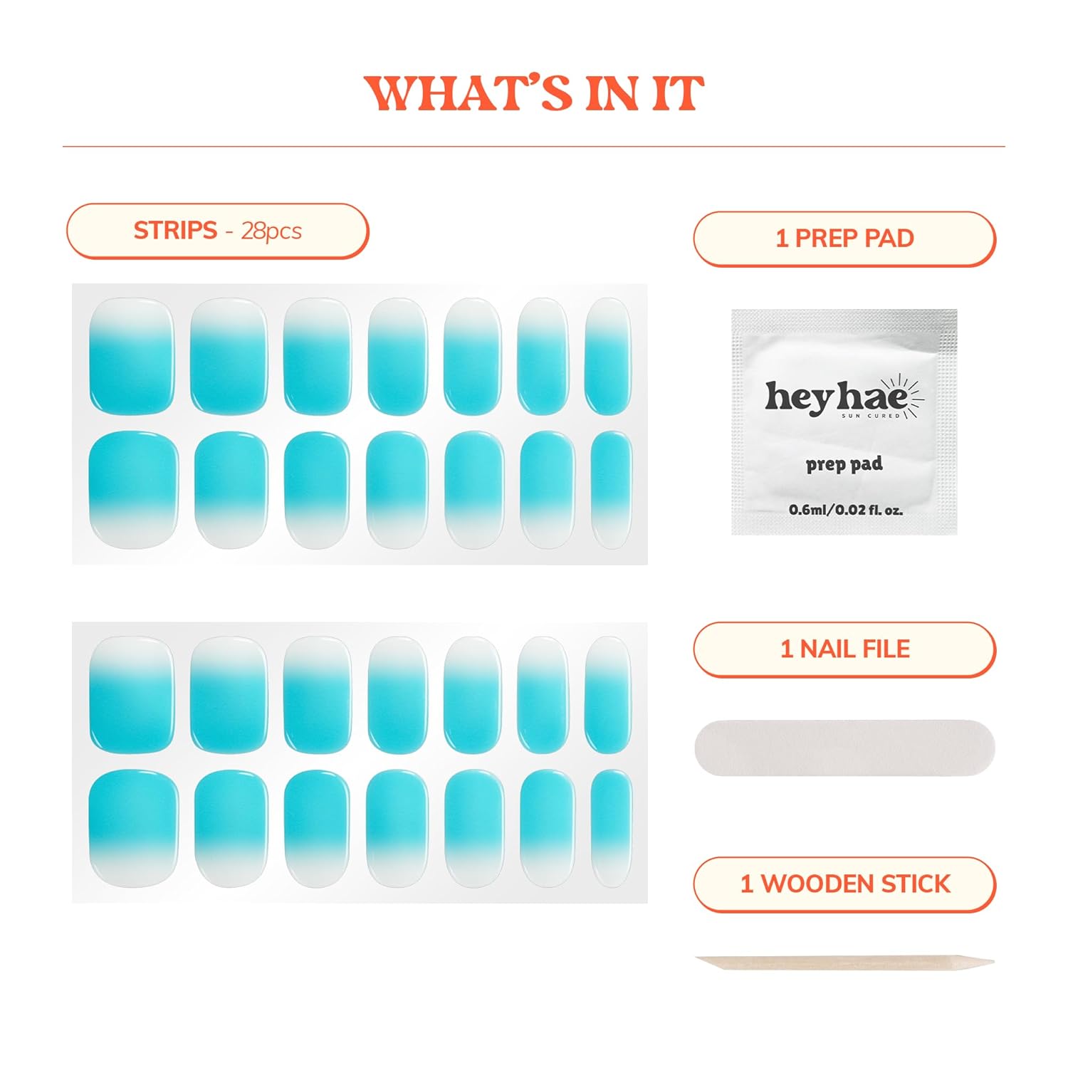 Semi Cured Gel Nail Strips | No LED Lamp Needed | Ombre, Blue, Spring | Easy Apply & Remove, Salon Quality | Includes 28 Strips, 1 Prep Pads, Nail File & Wooden stick - Hey, Blue Me Away
