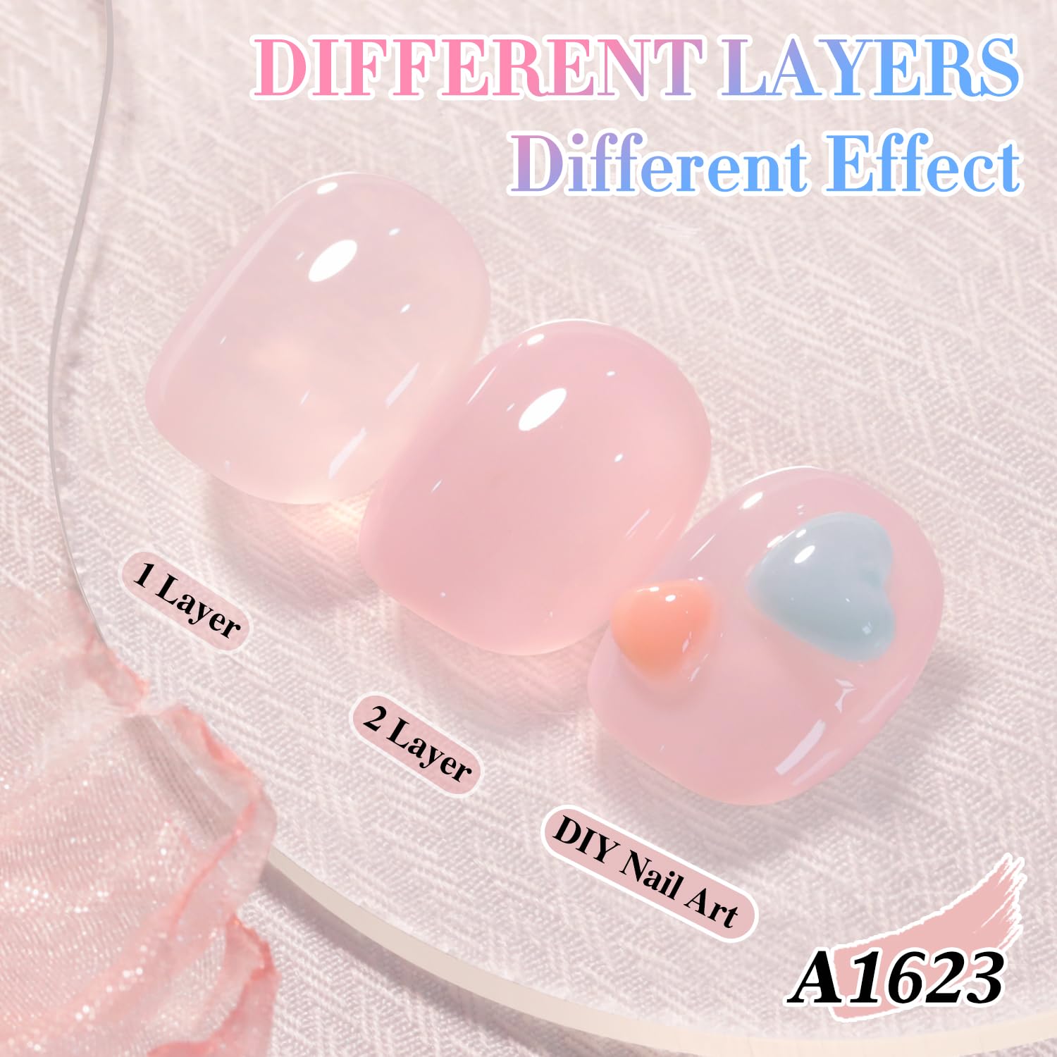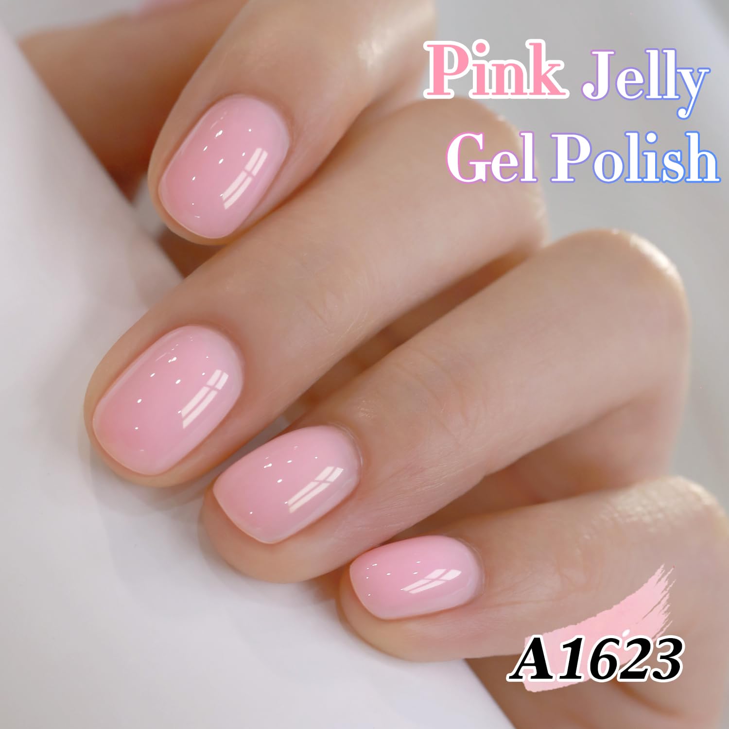 Double Rhythm 0.50 OZ Translucent Gel Polish Same Color Same Bottle Sheer Pastel Neutral Natural Milky 15 ML Jelly UV Nail Art DIY at Home (Pink-A1623)