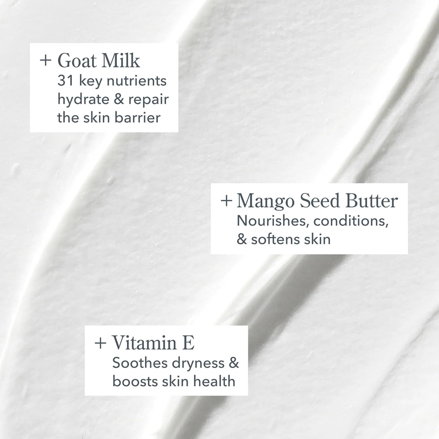 - THE GOAT MILK DIFFERENCE - Rich in lactic acid (a natural exfoliant), vitamins & minerals, goat milk has the same pH as human skin! It helps keep the microbiome well-balanced and prevents visible signs of irritation, sensitivity & premature aging.