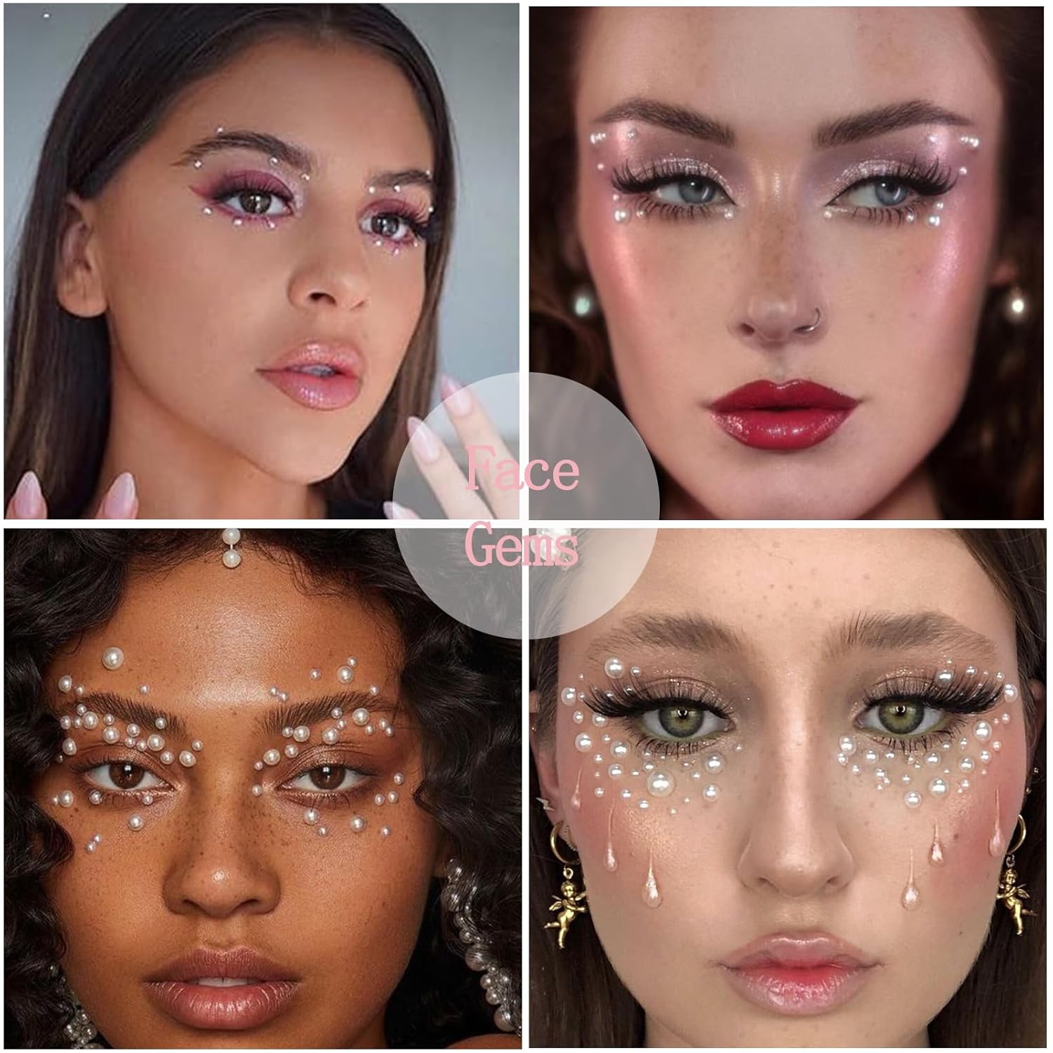 Nail Art Charms with Rhinestones Glue Gel White Flatback Pearls Luxurious Nail Charms Supplies Accessories Gold Silver Chains Nails Gems Jewelry Pearls for Women Nails Design