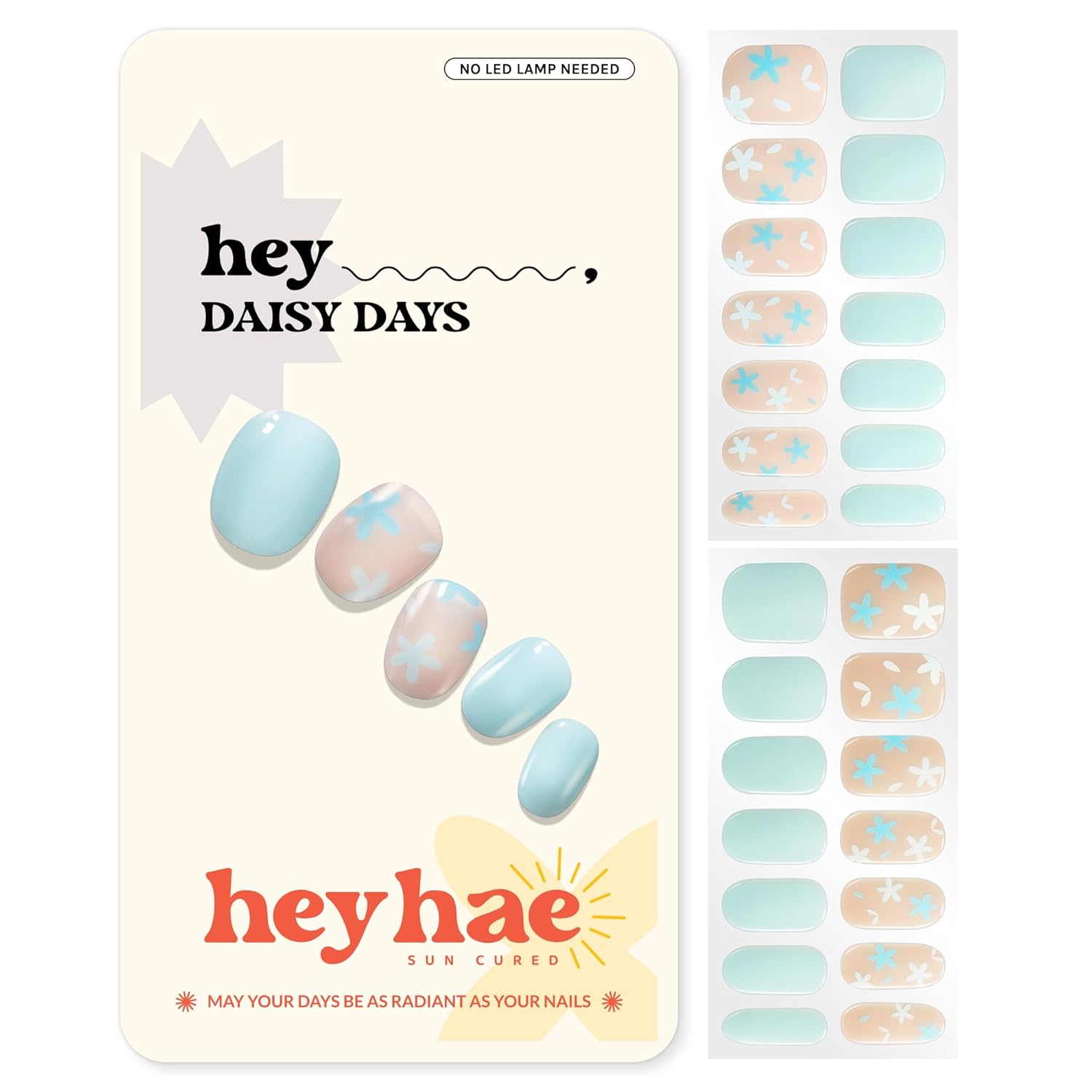 Semi Cured Gel Nail Strips | No LED Lamp Needed | Spring, Marble, Pink | Easy Apply & Remove, Salon Quality | Includes 28 Strips, 1 Prep Pads, Nail File & Wooden stick - Hey, Daisy Days