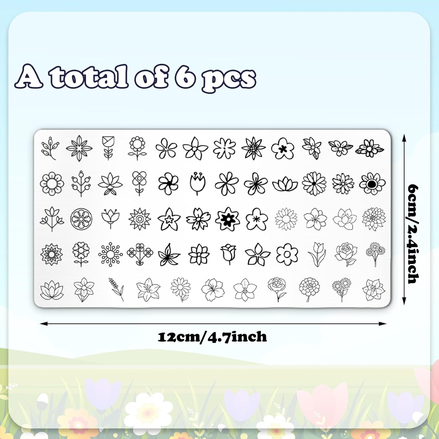 Whaline 6Pcs Spring Summer Floral Nail Plates Stamping Set Flower Leaves Stamp Templates Nail Art Plates for DIY Print Manicure Salon Design