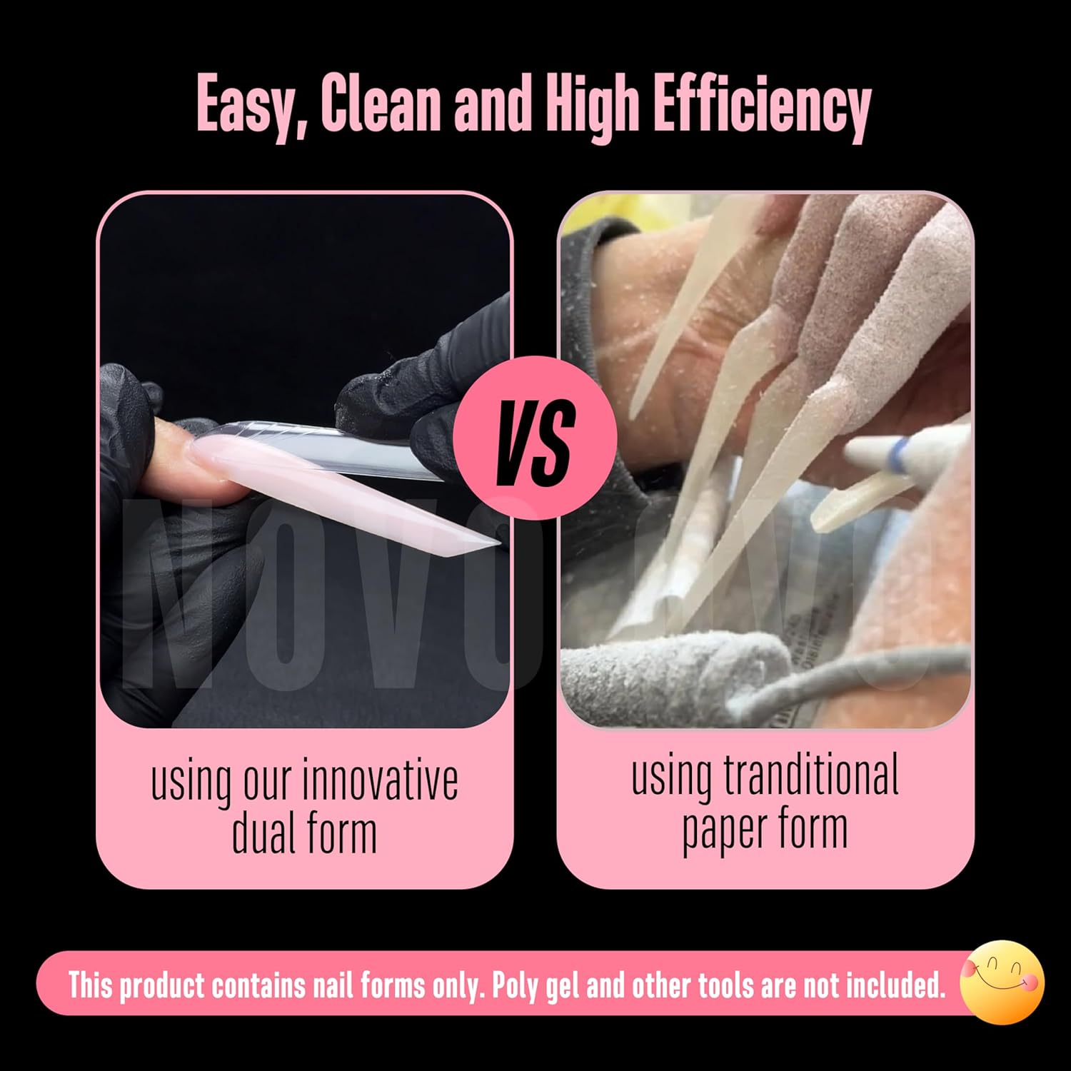 - THE WORLD'S FIRST XXXL OR XXXXL RUSSIAN ALMOND DUAL FORM: At the demand of our clients—nail artists and DIY enthusiasts who embrace the latest trends—NOVO OVO is excited to unveil this innovative Super Long Russian Almond dual form. Effortlessly create stunning nails that are ideal for holiday parties and spooky festivities by filling the forms with poly gel, harder gel or builder gel positioning them on your nail, curing, and simply popping them off for a flawless 3D astonishing finish.