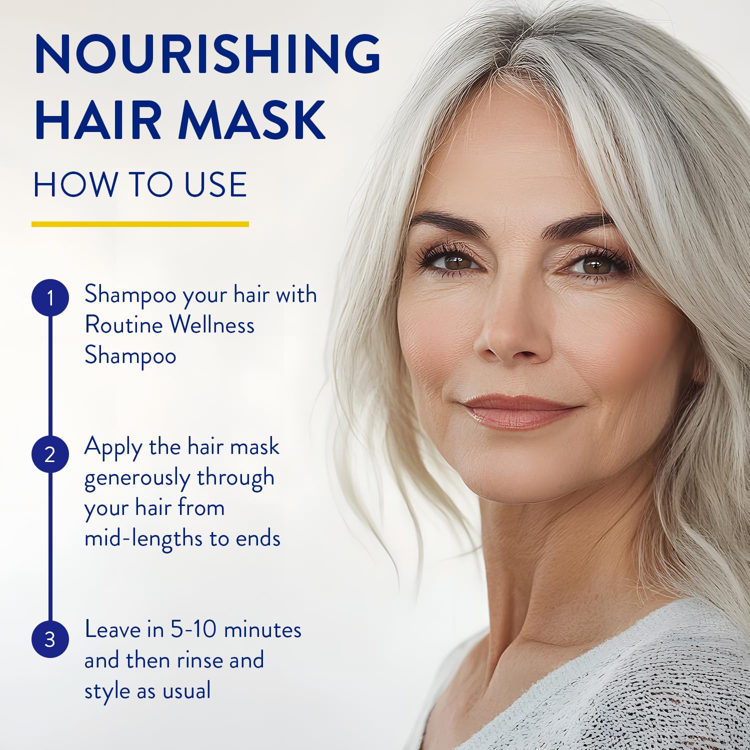 - SAFE FOR ALL HAIR TYPES AND COLOR SAFE: Our versatile hair mask promotes healthy, radiant hair for all hair types including thinning, fine, dry, damaged, straight, and is great as a curly hair mask. Our hair mask is also color safe. Routine Wellness Hair Masks protect against color fading and damage, ensuring your hair retains its beautiful hue while remaining soft and healthy.
