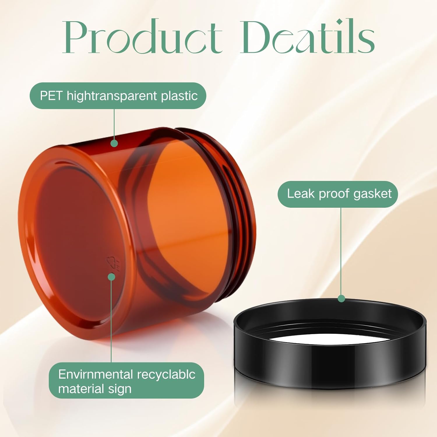 Patelai 4 Pieces Round Wide-mouth Leak Proof Plastic Container Jars with Lids for Travel Storage Makeup Beauty Products Face Creams Oils Salves Ointments DIY Making(6 Ounce,Amber)