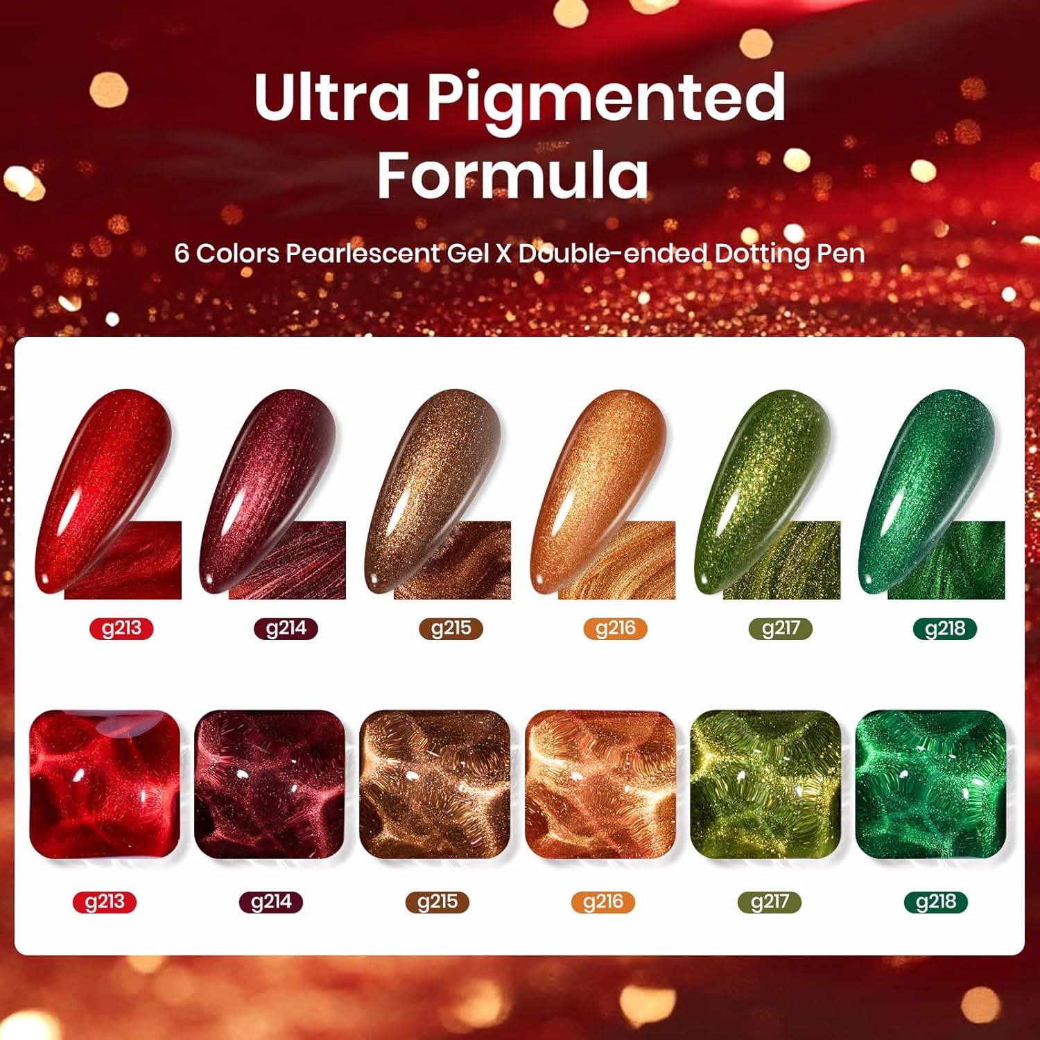 beetles Glitter Gel Nail Polish Set, 6 Colors Glitter Brown Orange Red Green Colors Christmas Nail Drawing Swirl Shell Thread Effect Gel Polish Kit Soak Off Led Nail Gel Polish DIY Mani Gifts