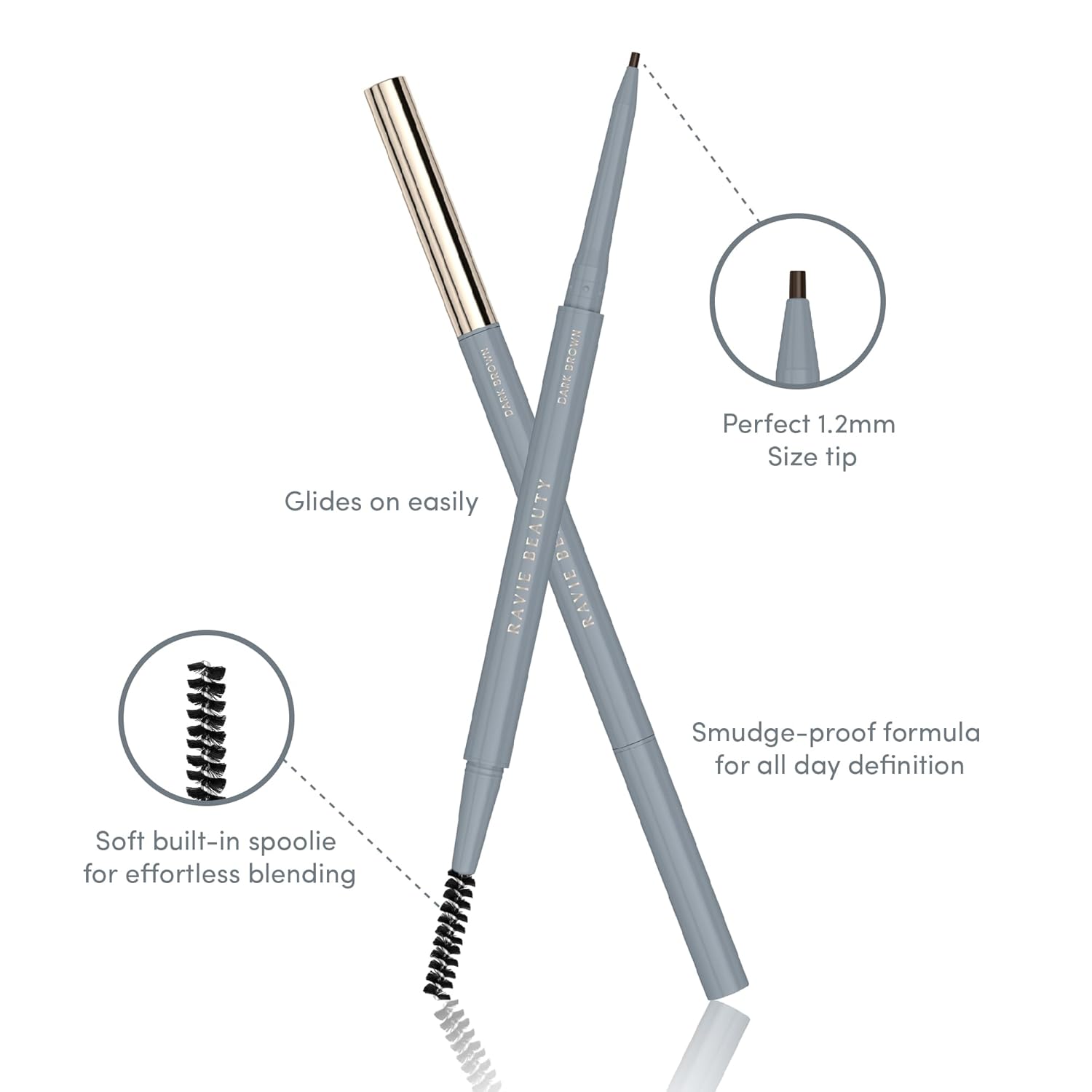 - FOOLPROOF FOR ROOKIES & PROS ALIKE: Classic meets modern innovation smooth application eliminates guesswork. Whether you're a beginner or beauty expert, achieve that timeless, polished brow look with today's speed and convenience every time with Ravie Beauty's eyebrow pencils.