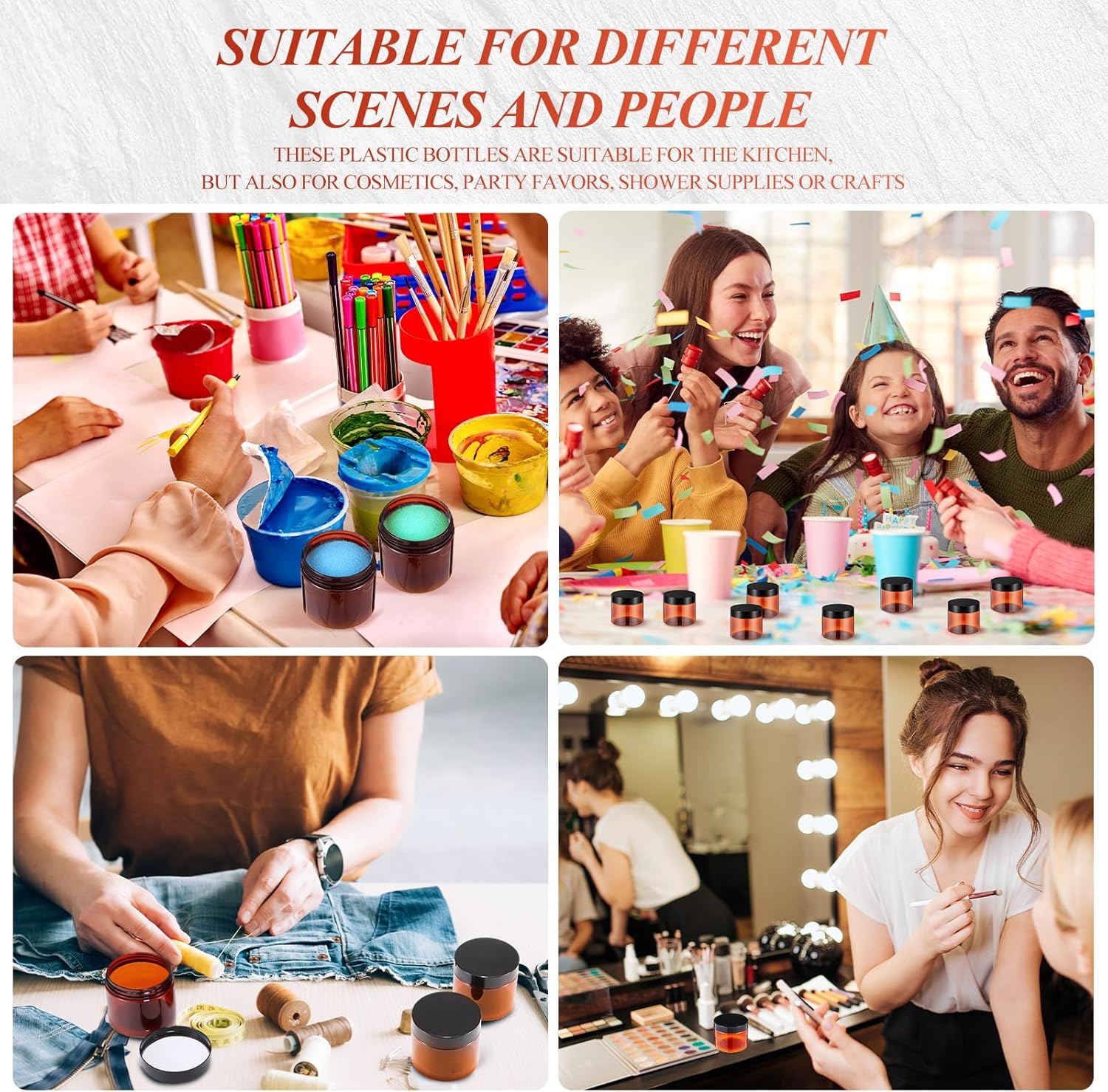 SATINIOR 36 Pieces 1 oz Plastic Jars with Lids Wide Mouth Airtight Reusable Container Acrylic Cosmetic Small Jars for Lotions Ointments Travel Toiletries Creams Make up Storage(Amber)