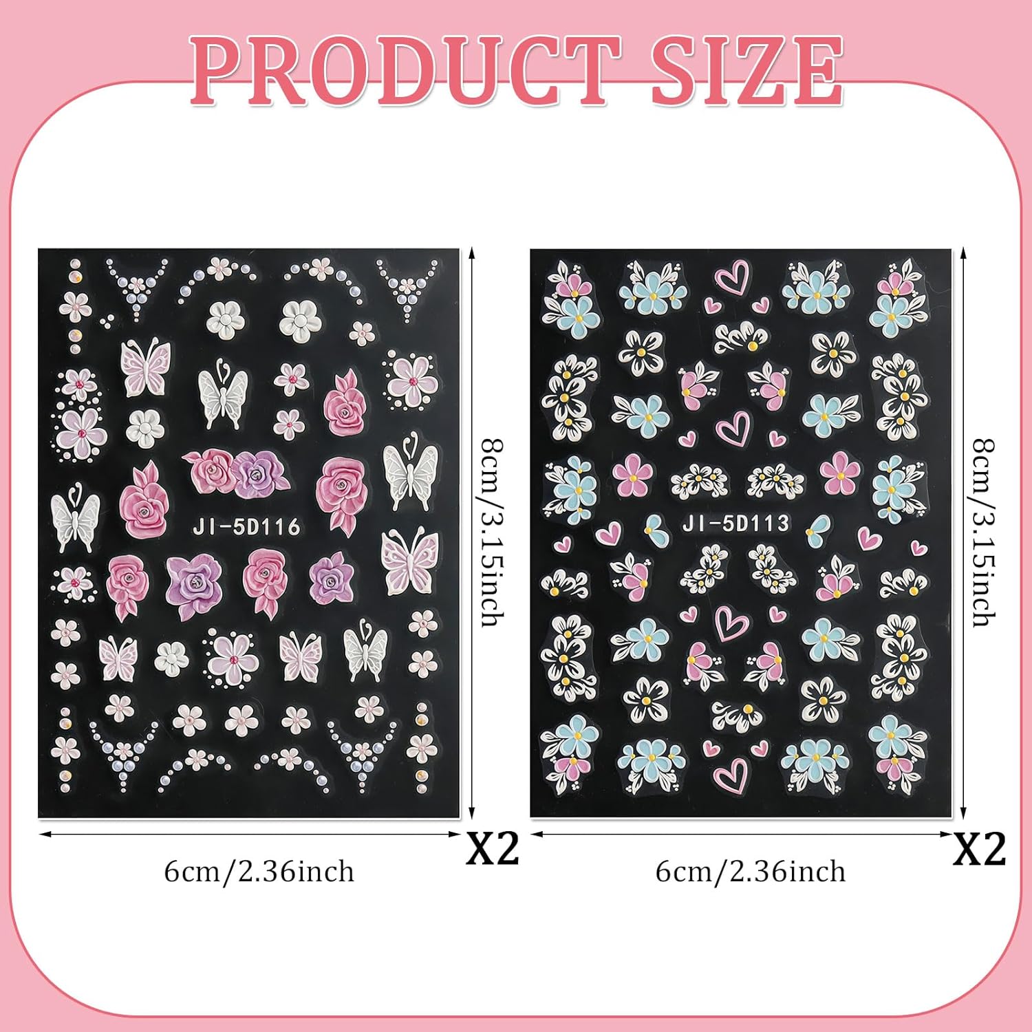 - 【Flower Nail Stickers Set】You will get 4 sheets 3d flower nail stickers for acrylic nails supply, many cute flower pattern for you to choose, colorful floral nail designs, and satisfy your rich imagination of nail DIY.