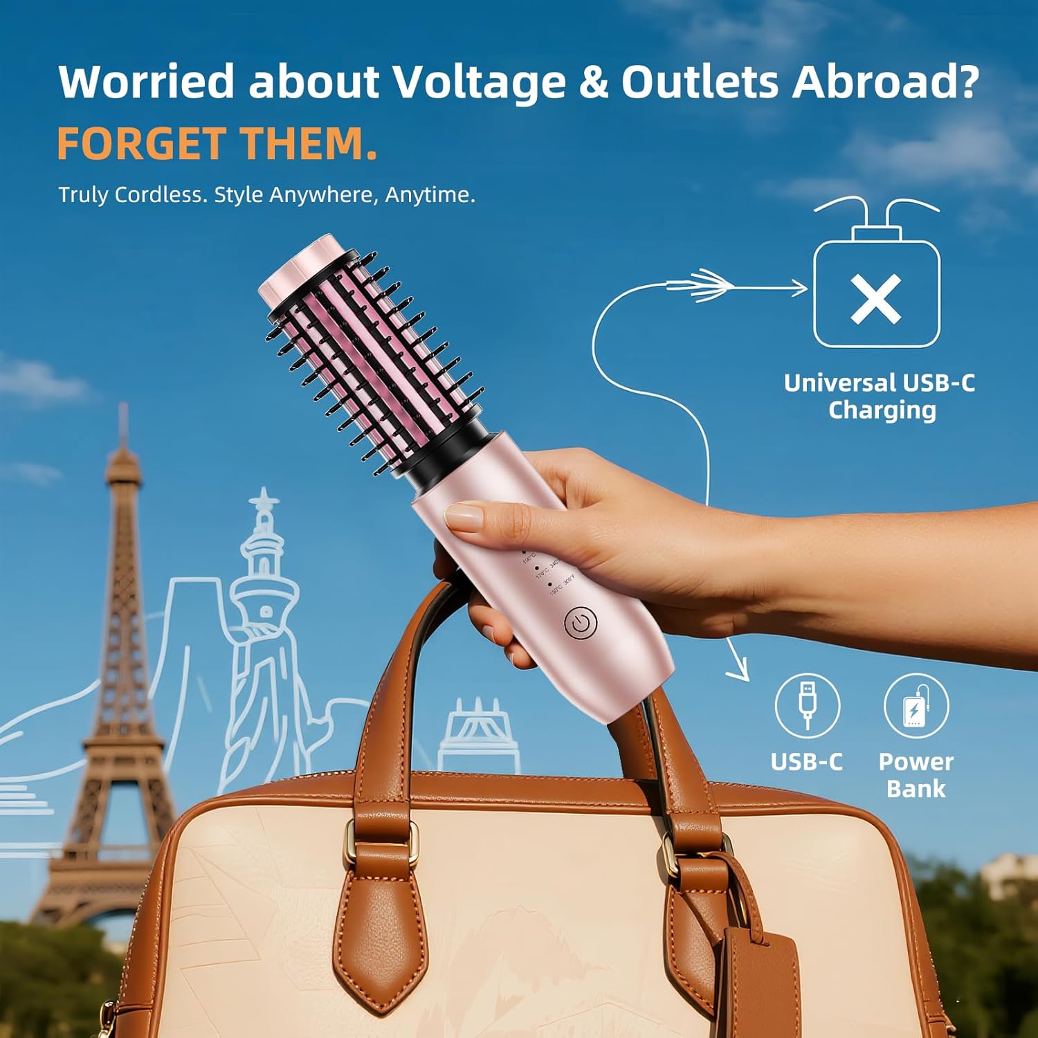- 【Your Cordless Travel & Gym Companion】 Free yourself from outlets and tangled cords. A compact, TSA-friendly heated round brush is a new travel essential. Fully cordless with universal USB-C charging, it’s ready for a weekend getaway, international trip, or post-workout glam-up. Experience the freedom of flawless hair, anywhere.