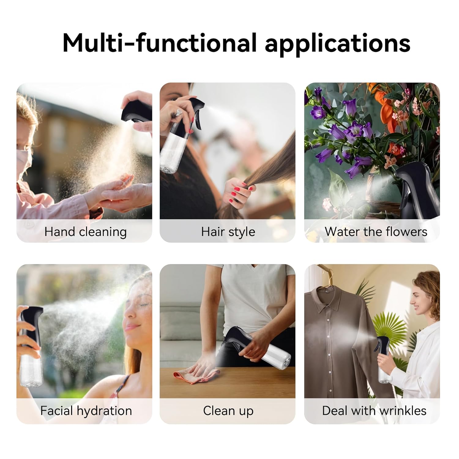Spray Bottle for Hair (6.8OZ /200ML) Continuous Ultra Fine Mist Sprayer for Hair, Salons, Barber, Plants, Skin Care, Cleaning Black