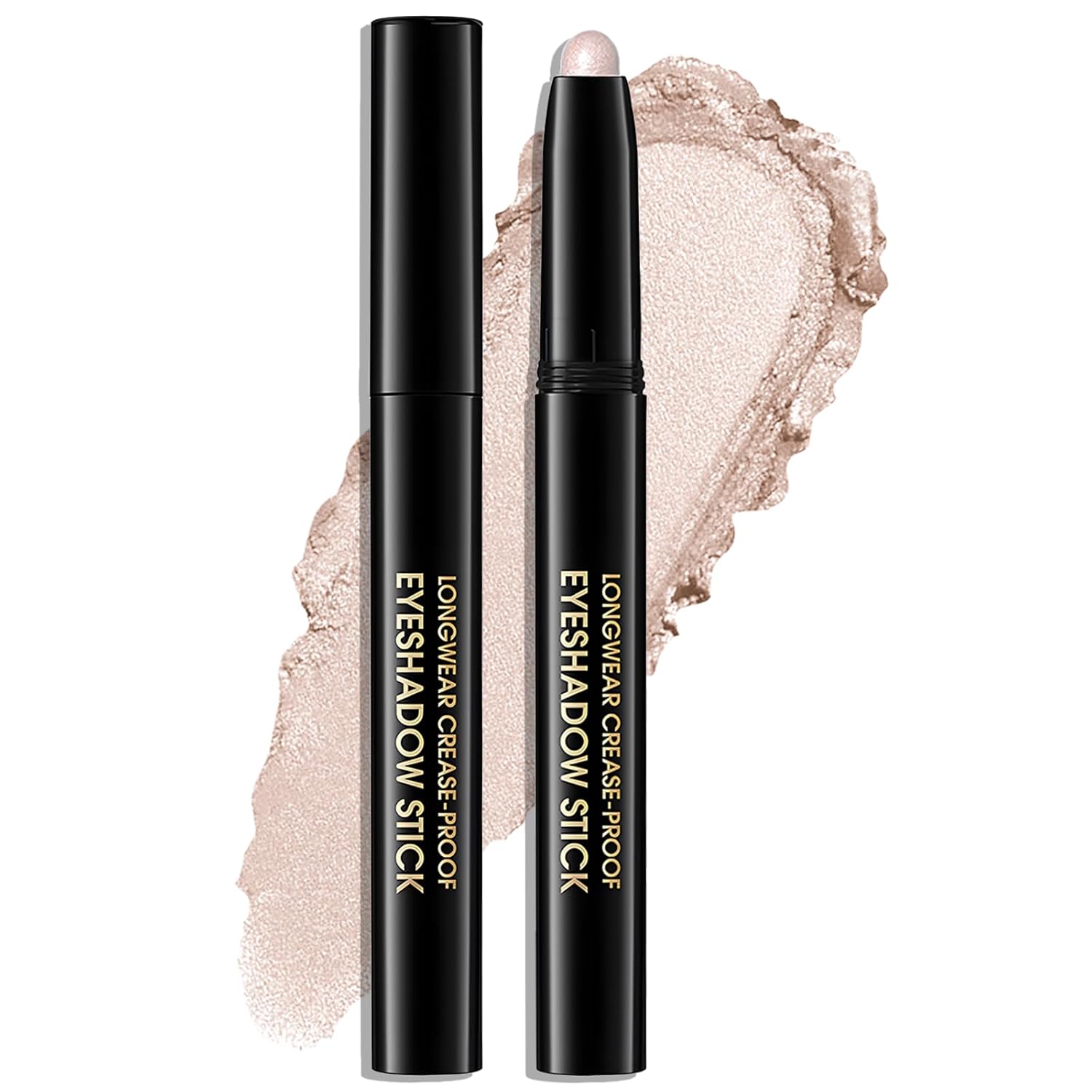 Eyeshadow Stick Shimmer Waterproof Long Wear Eye Brightener Cream to Powder Glitter Eye Shadow Crayon High Pigmented Highlighter Eye Liner Pencil Makeup Crease-Proof Buildable Color, 6 OYSTER