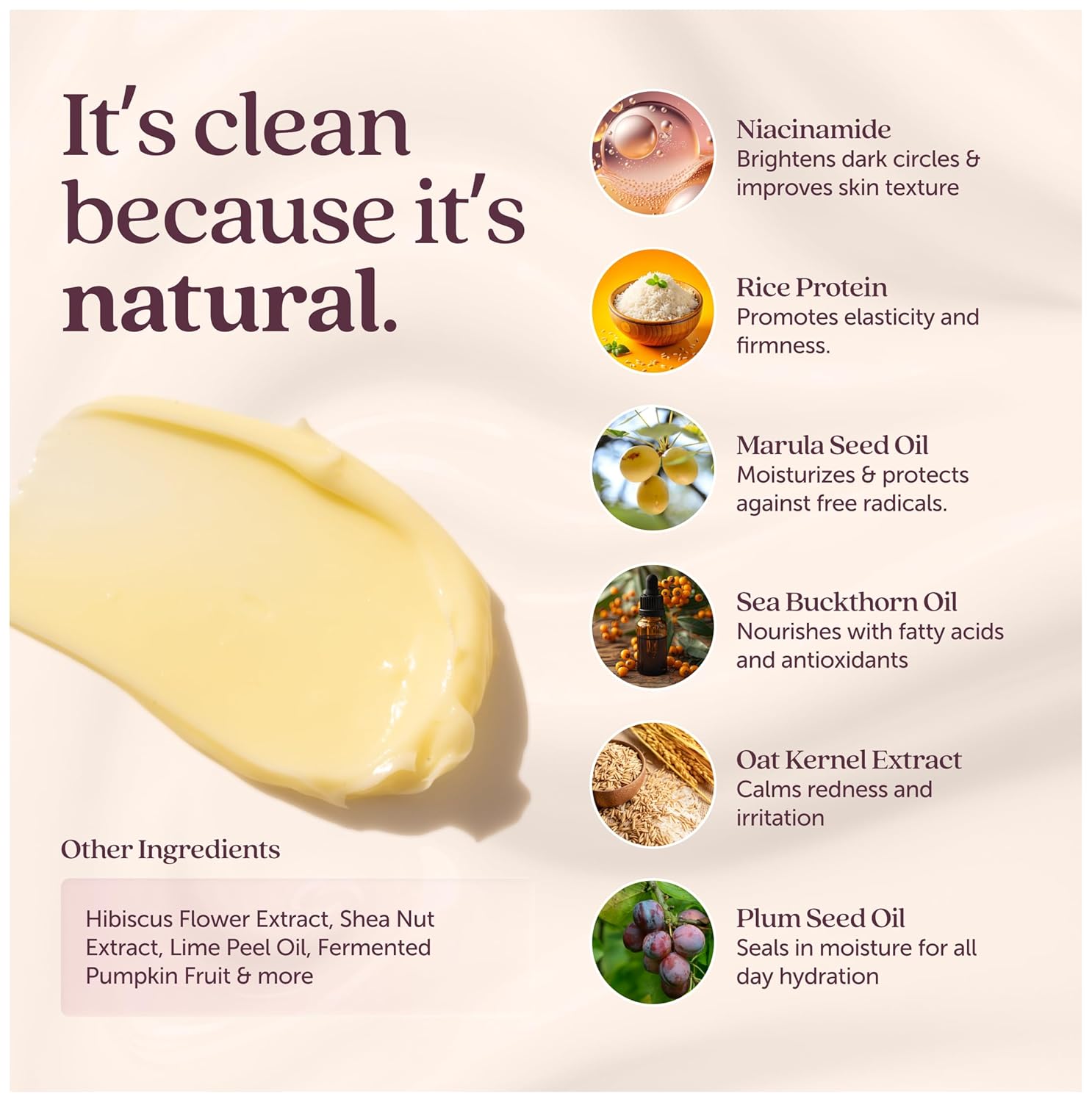 - A Garden of Glow: Infused with plum and hibiscus to hydrate and firm, sea buckthorn and oat kernel to soothe and strengthen the moisture barrier, and pumpkin ferment to promote a brighter, more even tone. Marula and shea replenish essential lipids for soft, supple skin, while rice protein helps smooth and firm for a more rested, youthful look.