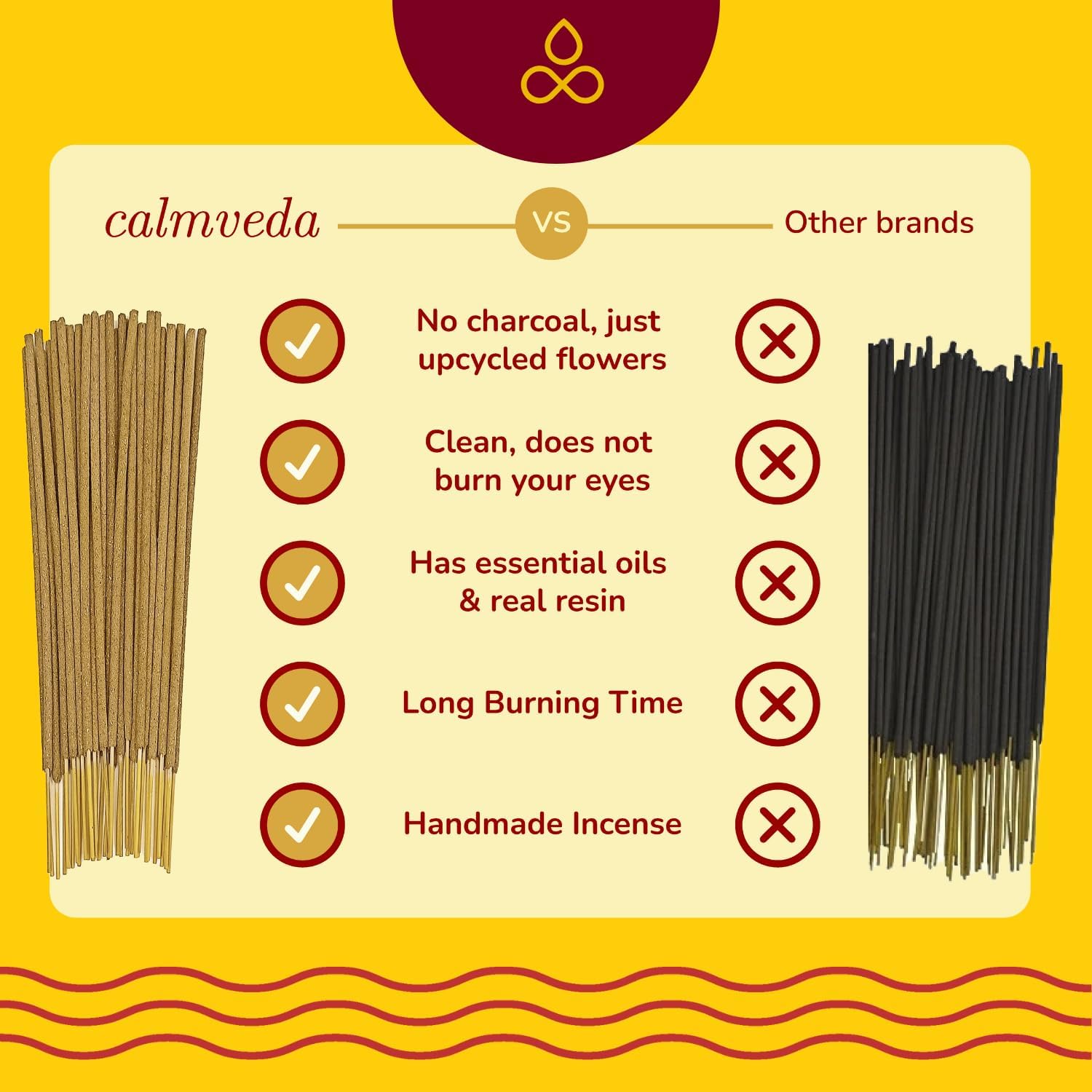 - MADE FROM SACRED FLOWERS : Over 800 mil tonne of flower is offered to Gods in India every year, which is then directly disposed in rivers. We UPCYCLE these holy flowers to use in our incense stick.