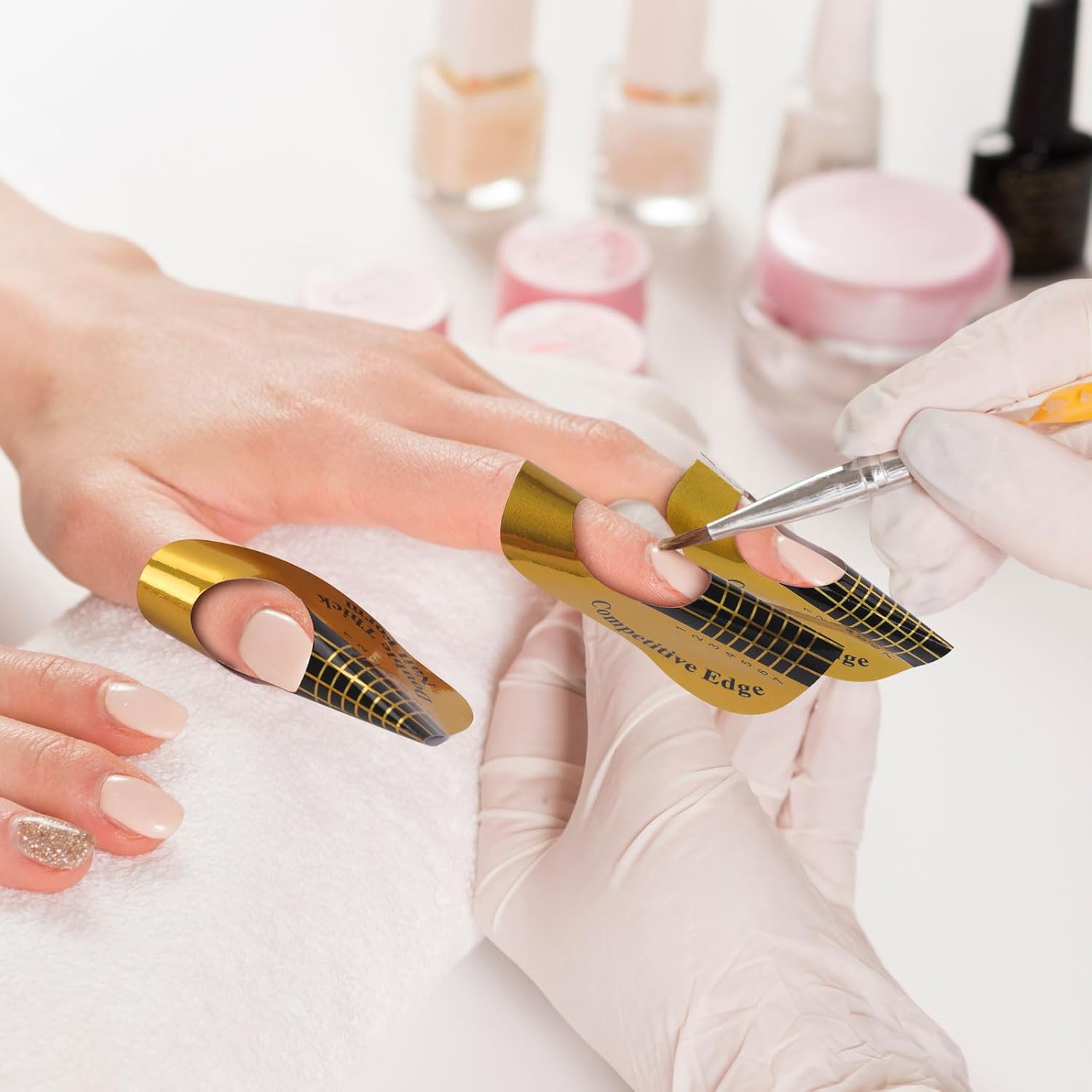 400 Pcs Nail Forms for Acrylic, Gold Horseshoe Nail Extension Stickers for Builder Gel and Poly Gel - Nail Art for Home, Salon