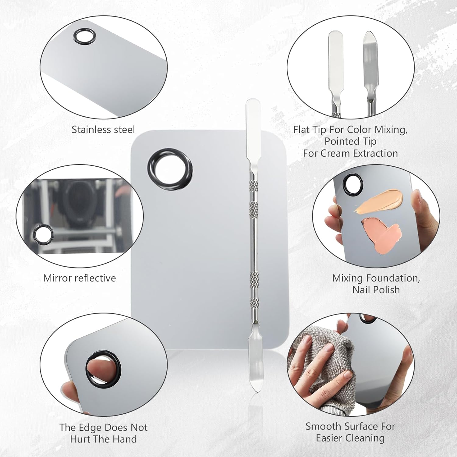 - Easy to Clean: After use, you can easily clean this makeup palette tray by wiping it with a cotton cloth dipped in cosmetic oil or facial cleanser. The surface of foundation mixing palette is smooth and non-porous, and it is not easy to leave makeup residue, so it is very convenient and quick to clean.