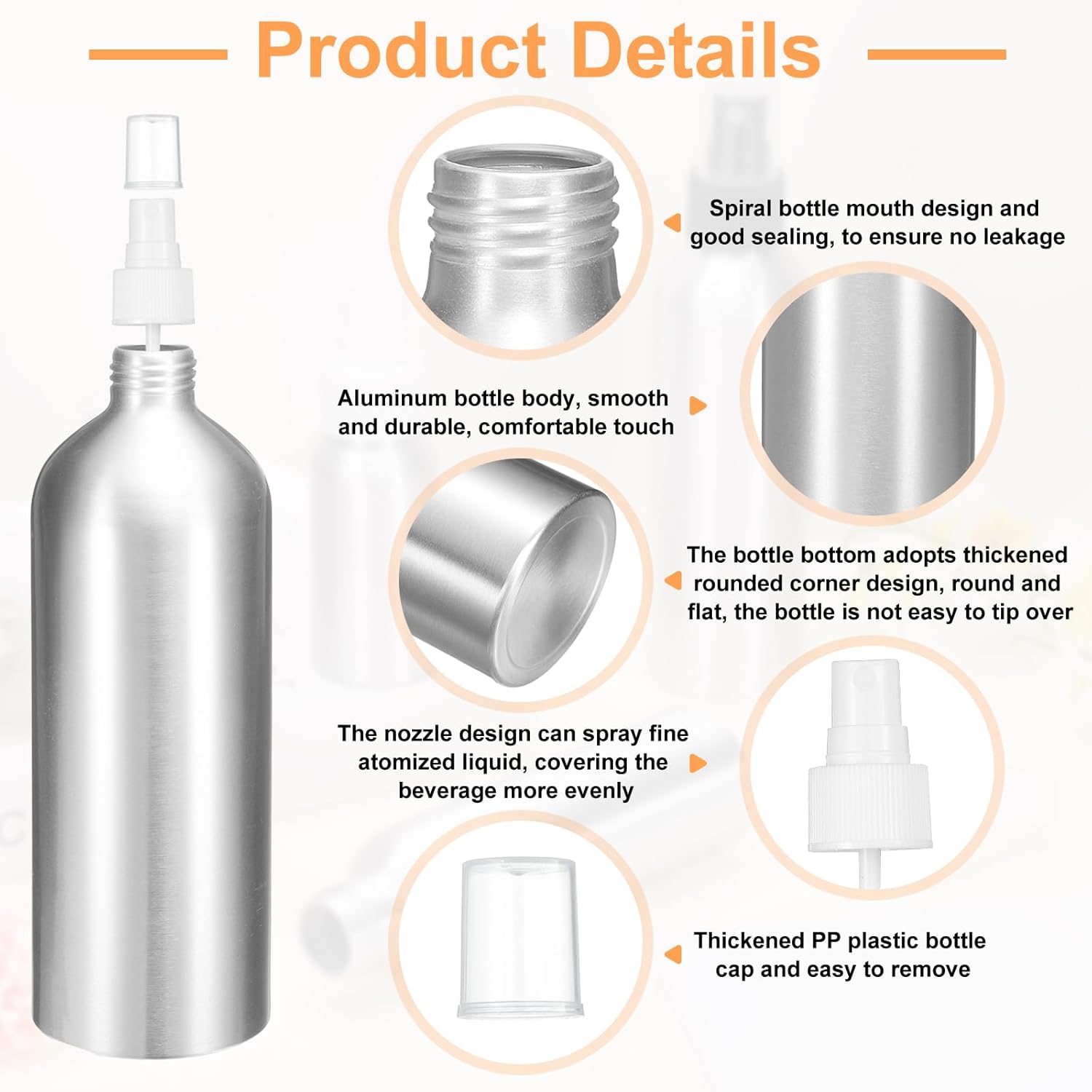 HARFINGTON 3pcs Aluminum Fine Mist Spray Bottles 500ml/16oz Metal Small Liquid Alcohol Refillable Travel Container with White Plastic Nozzle Cap for Perfume Skincare Cosmetic Storage Bottle