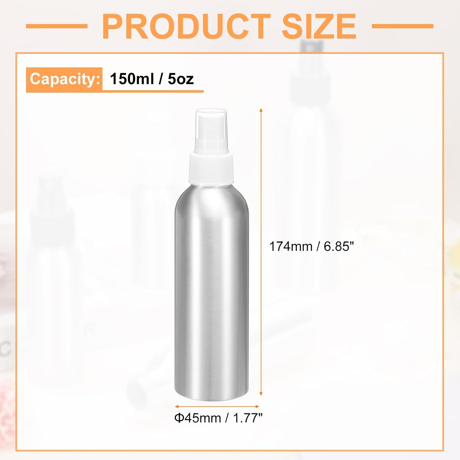 HARFINGTON 3pcs Aluminum Fine Mist Spray Bottles 150ml/5oz Metal Small Liquid Alcohol Refillable Travel Container with White Plastic Nozzle Cap for Perfume Skincare Cosmetic Storage Bottle