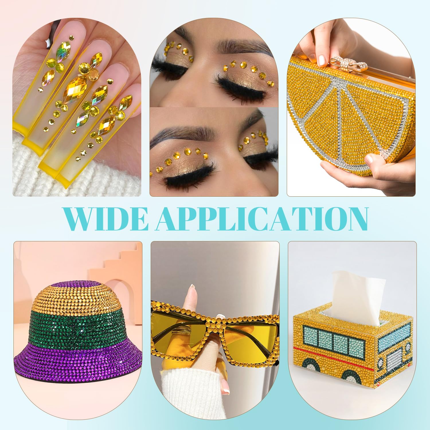 - WIDE APPLICATION -- These sparkling iridescent resin crystals are perfect for creating dazzling looks. Use them for bedazzling DIY crafts like shoes, tumblers, mugs, bottles, phone cases, popsockets, scrapbooks, photo frames, diamond paintings, greeting cards, bags, glasses, guitars, keychains, hats, masks, hair clips, bracelets, wristbands, clothing, wedding dresses, and more. Apply it to what you want to bling!