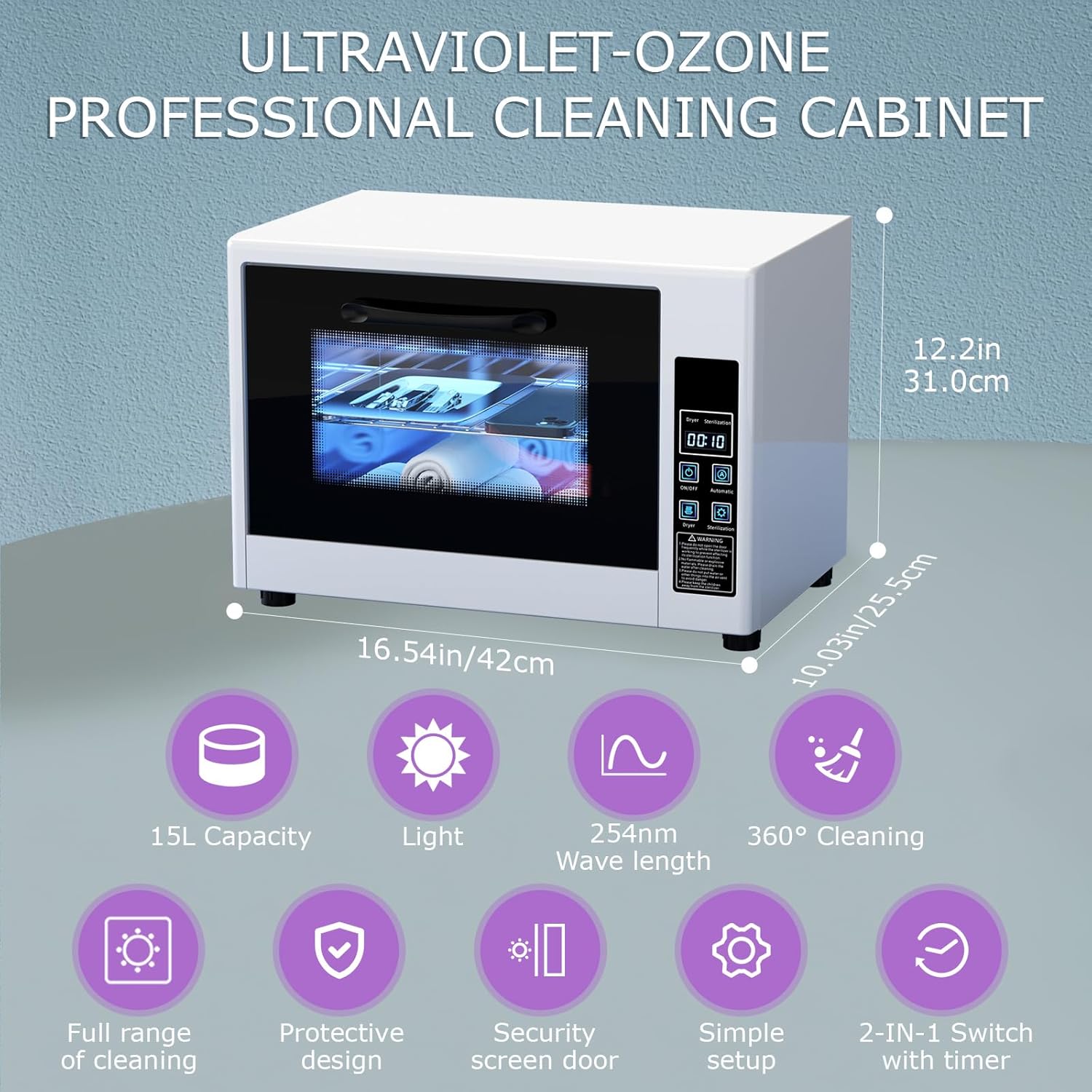 - Powerful & Hot Air Cleaning: This cleaning cabinet uses light and hot air to remove harmful substances and purify the air. light penetrates deep into tools, the stainless steel interior effectively accomplishes 360° cleaning of items, while hot air dries them quickly. The result? Clean, dry tools ready for use, providing a reliable hygiene solution for every professional