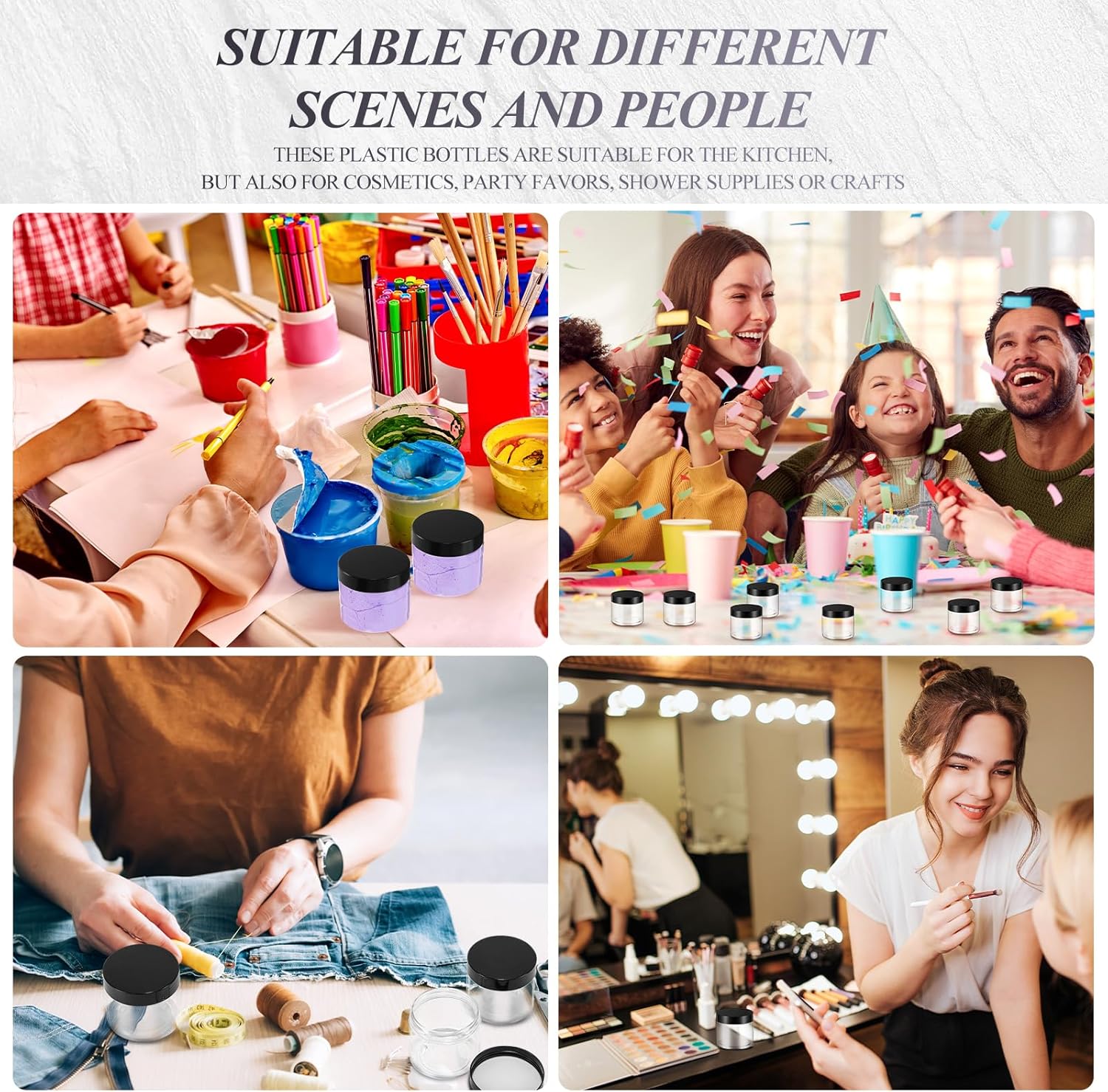 - Multi-functional Container: good way to store your homemade cosmetic, body lotion, moisturizers, face masks, specimen collection, putty, lotions, fragrances, DIY, party favors, or other crafts, good tools in daily life
