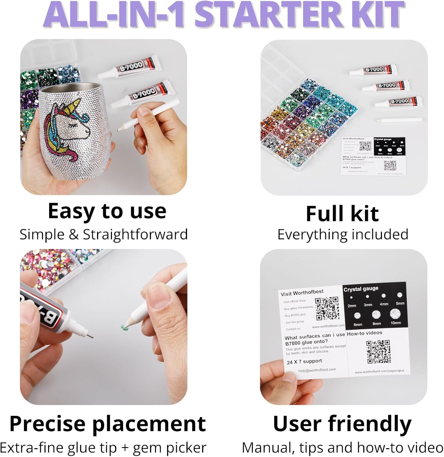 - Easy to Use -- This kit is designed to be straightforward, and versatile for various crafting projects. The manual is user-friendly and beneficial for both novice and experienced crafters. The complete and durable tools are suitable for precisely applying rhinestones to create intricate designs, with no additional tools required. Rhinestones are easy to apply and remove. The sturdy container with 12 grids keeps all rhinestones organized by size and color, making them easy to store and access