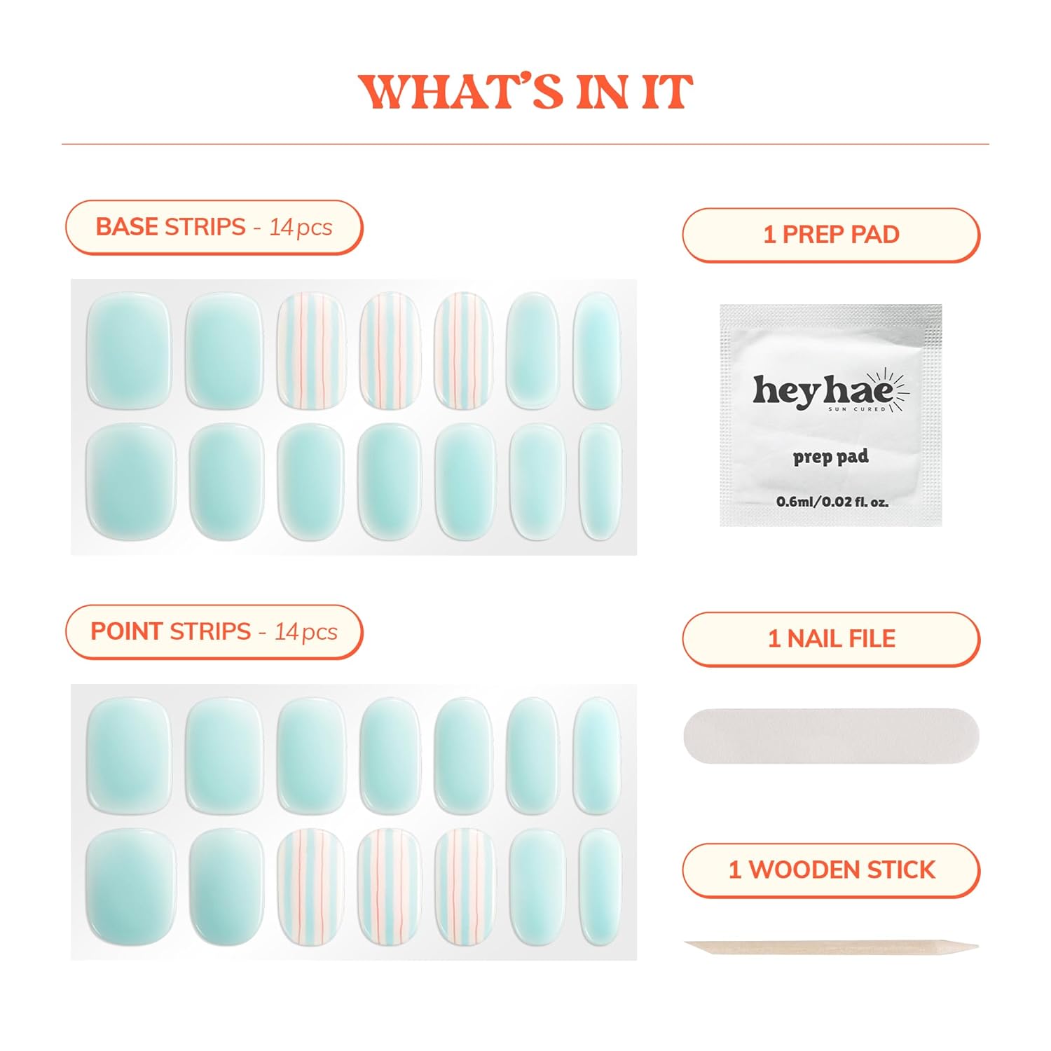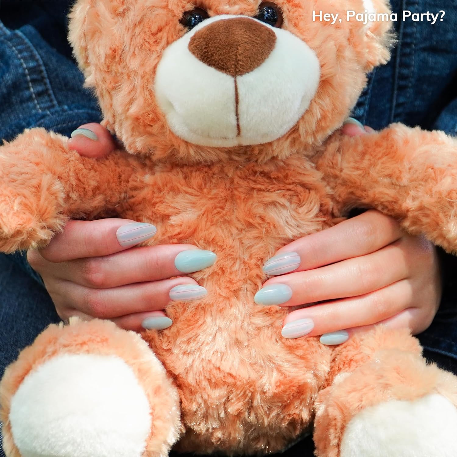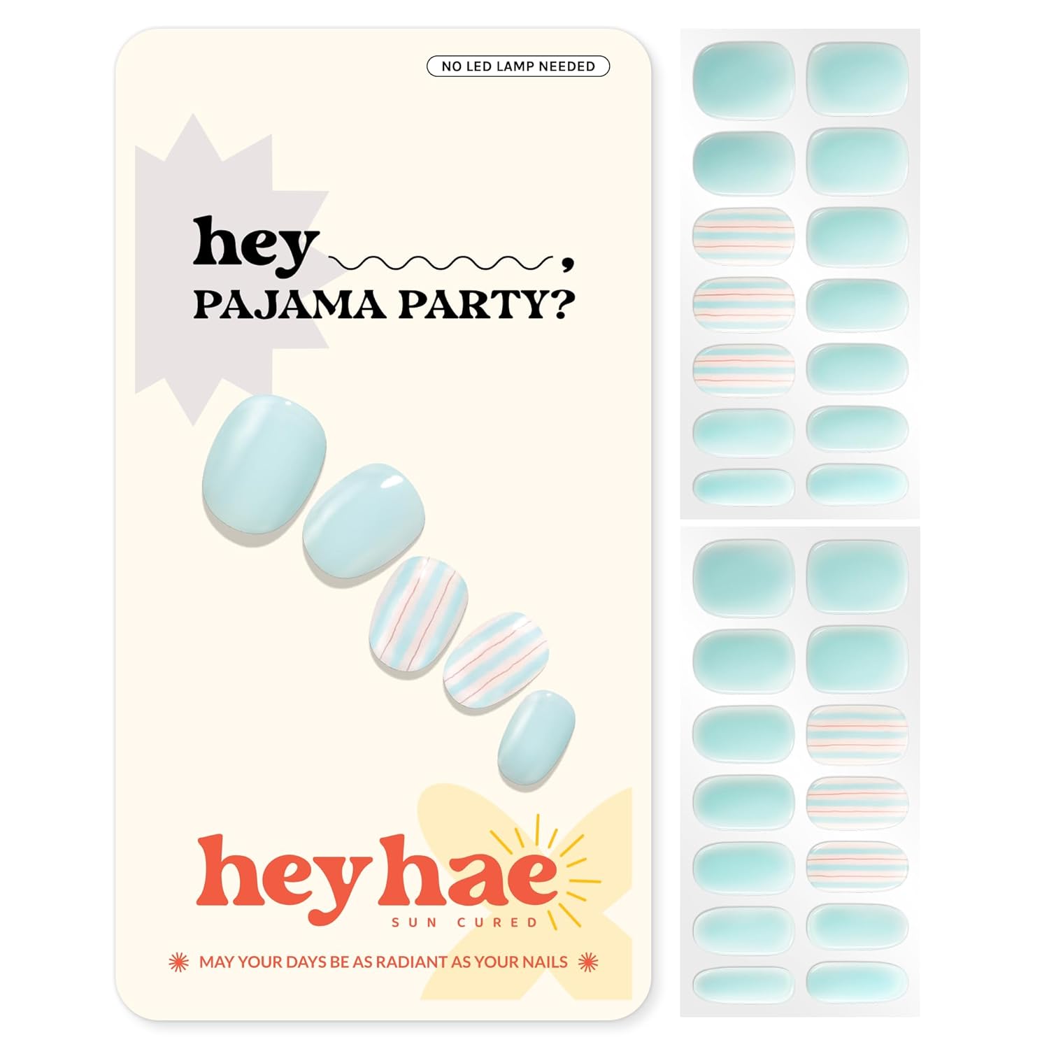 Semi Cured Gel Nail Strips | No LED Lamp Needed | Summer, Solid, Blue | Easy Apply & Remove, Salon Quality | Includes 28 Strips, 1 Prep Pads, Nail File & Wooden stick - Hey, Pajama Party?