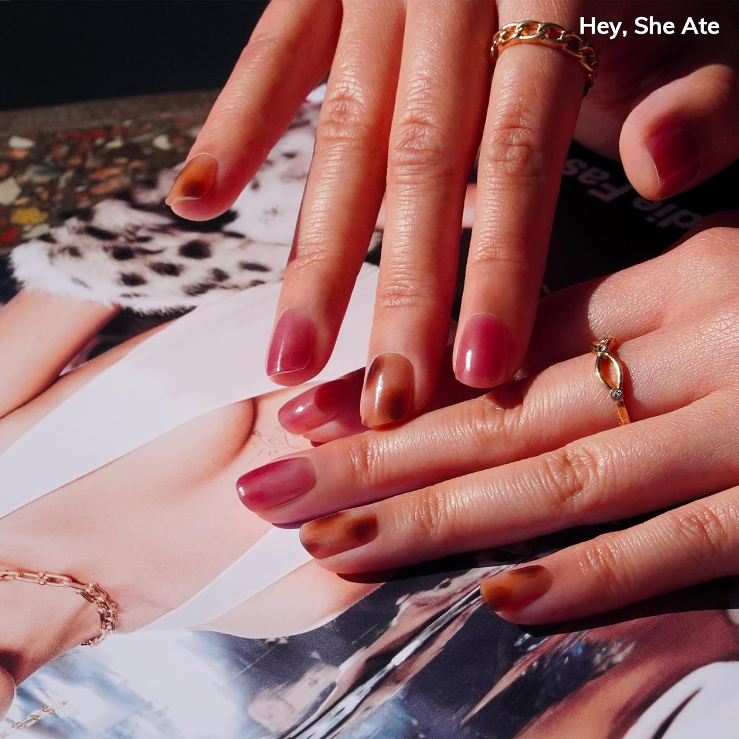 - A bold mix of caramel tortoiseshell and glossy rose pink creates an effortlessly edgy-meets-chic look. Swirled and stylish—this one’s for the chill girls.