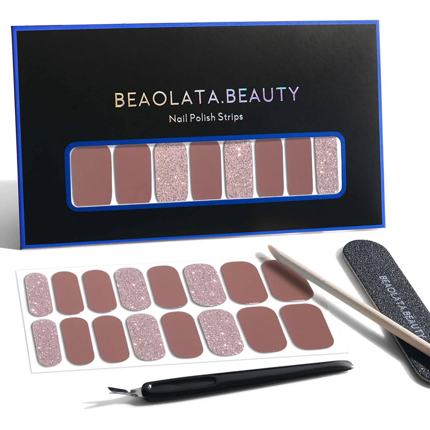 Nail Polish Strips, 32PCS Salon Quality Wraps, Long Lasting Gel Nail Stickers for Women Easy Apply& Remove (Canyon Dusk Fawn)