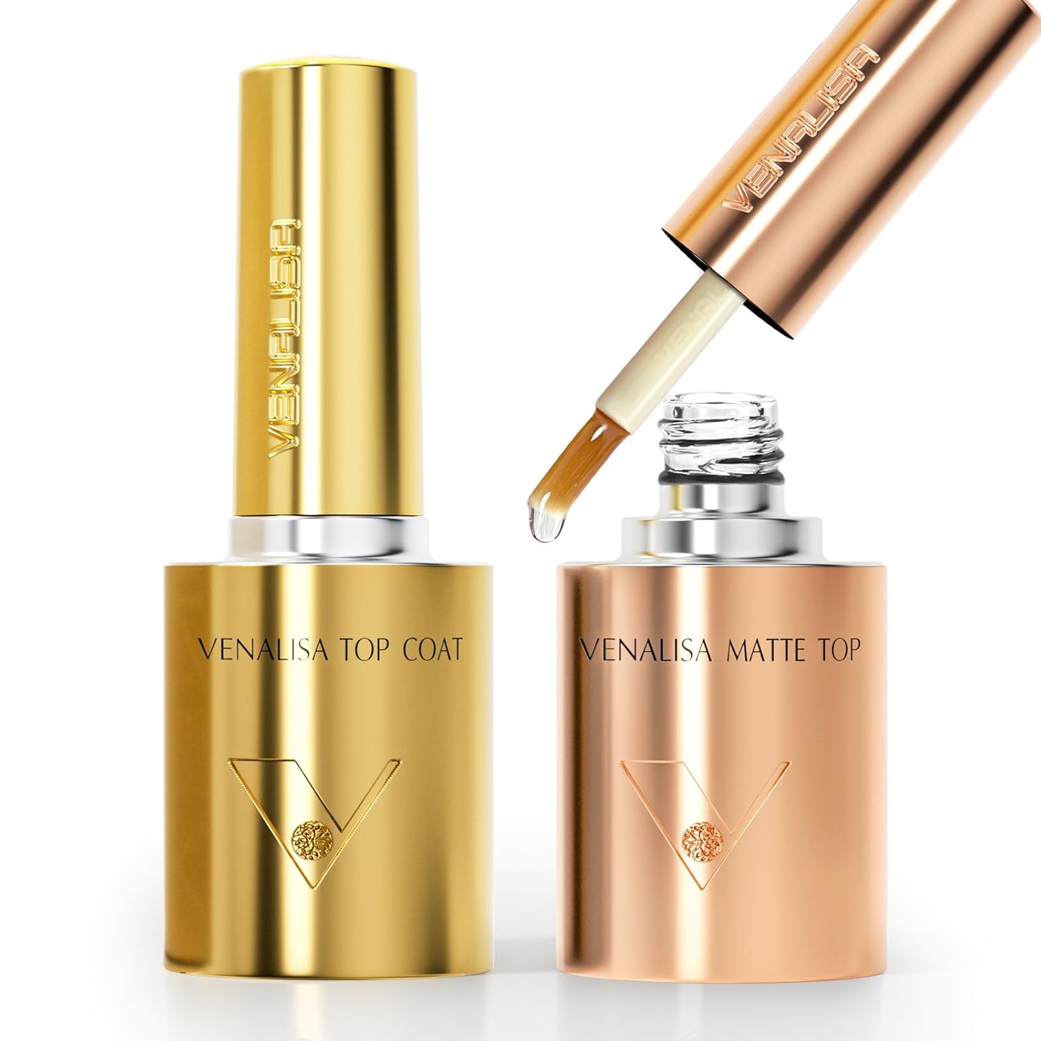 VENALISA 2 Pcs No Wipe Matte Top Coat and Glossy Gel Top Coat Set- High Shiny Long Lasting Clear Gel Nail Polish Kit, Soak Off Nail Art Home and Professional Manicure