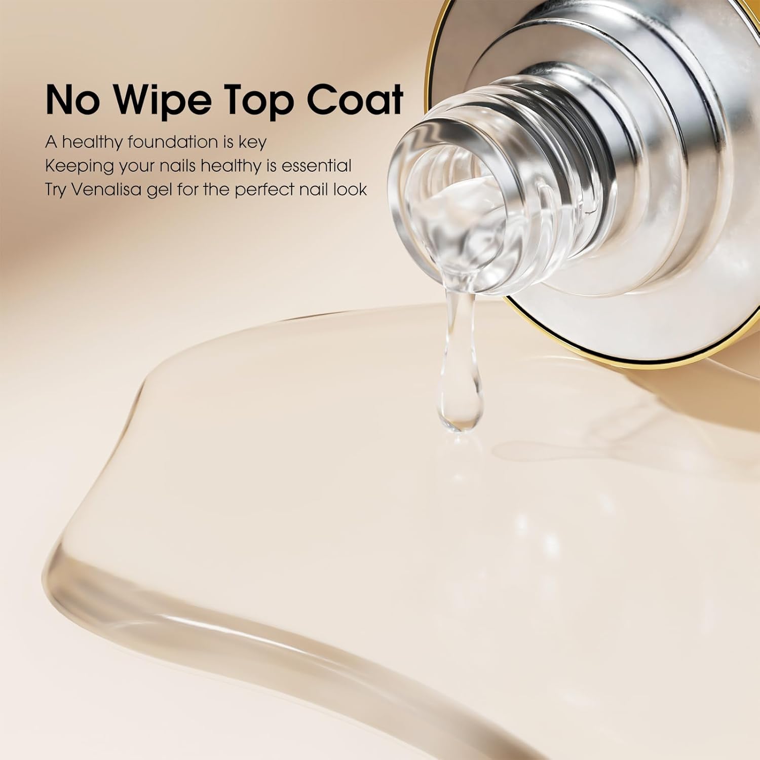 VENALISA 2 Pcs No Wipe Gel Top Coat Set- High Gloss Shiny Long Lasting Top Coat Clear Gel Nail Polish Kit, Soak Off Nail Art Home and Professional Manicure